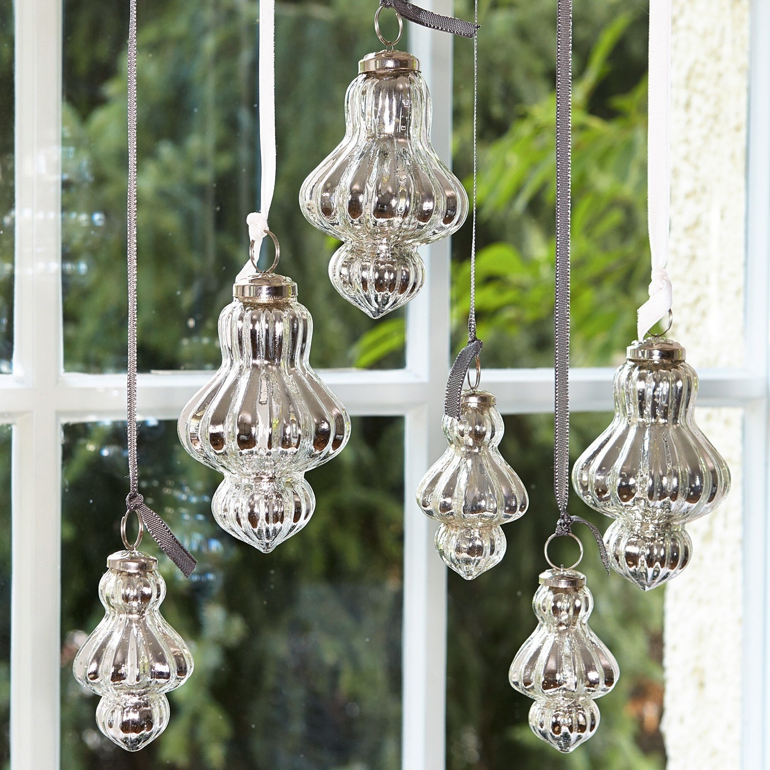 Man kann den Blick einfach nicht von diesen Schönheiten lassen. Das silberne Antik-Finish, der edle Schimmer und die attraktive Form, entfalten eine beinahe hypnotische Wirkung. Der sechsteilige Weihnachtsschmuck vereint elegantes Design mit erstklassigen Materialien. Jedes Stück wird aus Glas geformt, sorgfältig verspiegelt und mit einer reizenden Metal-Aufhängung bestückt. Eine echte Bereicherung für Ihre Weihnachts-Deko!