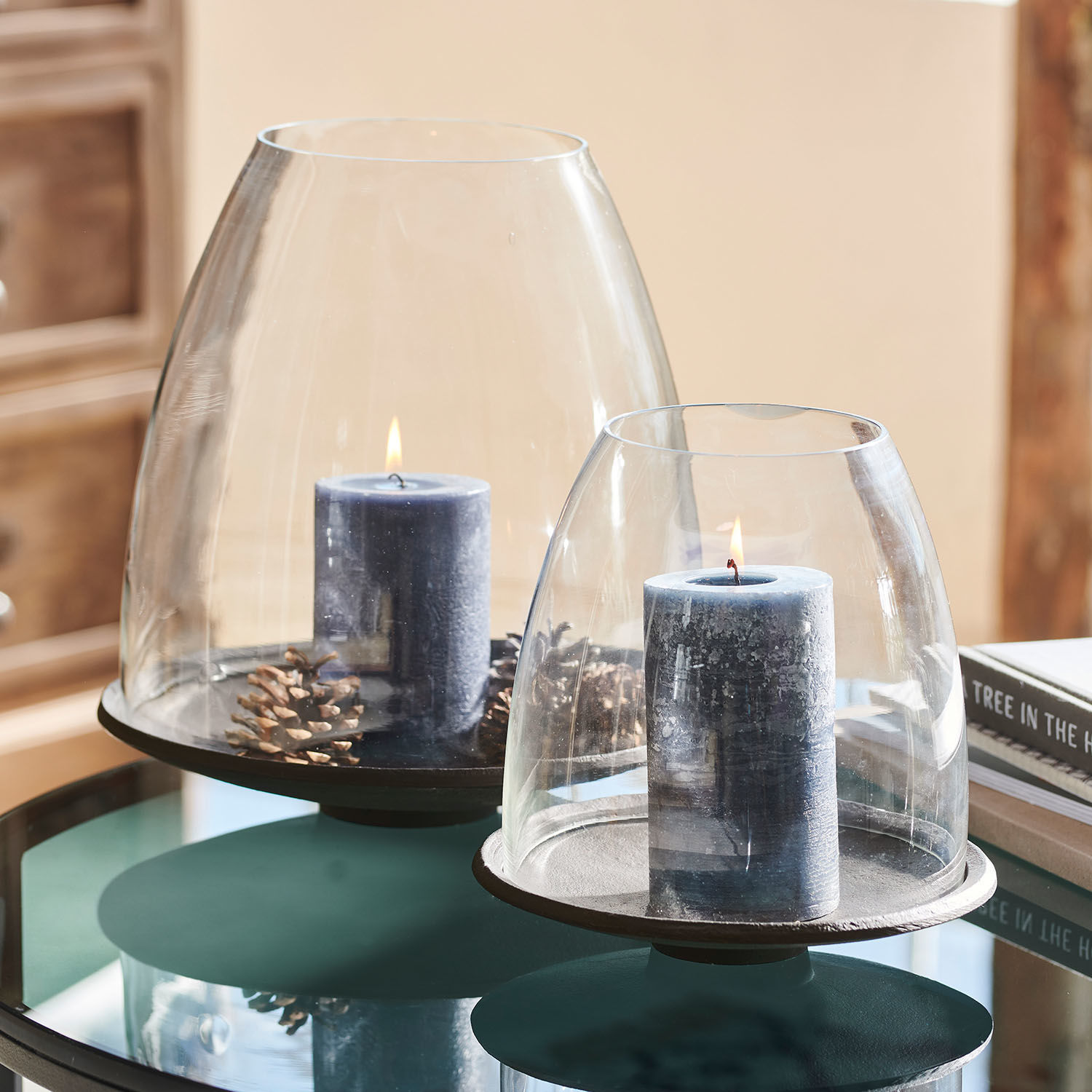 Von der stimmungsvollen Inszenierung eines Raumes bis hin zur Ergänzung einer saisonalen Dekoration bilden Windlichter eine unkomplizierte und vor allem heimelige Ausdrucksmöglichkeit. Sie sind das perfekte Accessoire für jeden Tisch, jedes Regal und jede Theke. Unser harmonisches Duo wird mit einer rustikal gearbeiteten Basis geliefert, die sich perfekt für Ihre Lieblings-Stumpenkerzen eignet. Die raue Oberfläche weist einen dezenten Schimmer auf, der die elegante Designsprache auf gekonnte Art und Weise unterstreicht. Den perfekten Kontrast bilden hochwertige Glaszylinder, die Sie ganz einfach abnehmen können. Nicht in der Stimmung für Kerzenlicht? Füllen Sie die Zylinder mit Sand und Muscheln, Potpourri oder LED-Girlanden!