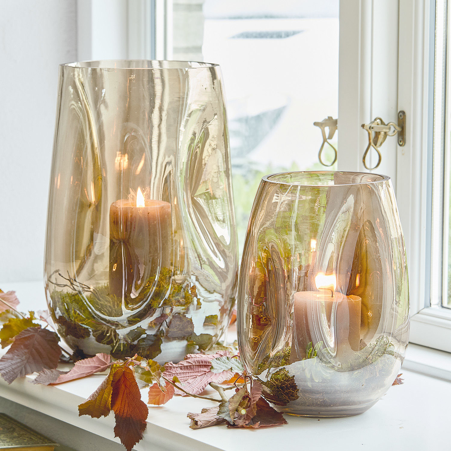 Ein reizvolles Duo mit künstlerischem Flair und innovativem Design. Die beiden edlen Windlichter aus fein schimmerndem Glas haben eine sehr interessante, asymmetrische Formgebung mit sanften Einbuchtungen. Eine Optik, die man nicht überall sieht – perfekt für alle, die das Individuelle schätzen. Das elegante Doppel kommt in zwei Größen als harmonisches Set zu Ihnen. Entzünden Sie darin Teelichter oder Stumpenkerzen und freuen Sie sich auf ganz entspannte Stunden bei heimeliger Illumination zu Hause. Die attraktiven Windlichter wirken sehr schön auf dem Tisch oder am Fenster. Auch als Vase oder zur Aufbewahrung von kleinen Accessoires machen die gläsernen Schmuckstücke sich bestens – oder befüllen Sie sie mit hübschen Dingen wie Murmeln, Federn oder Trockenblumen für einen besonderen Effekt.