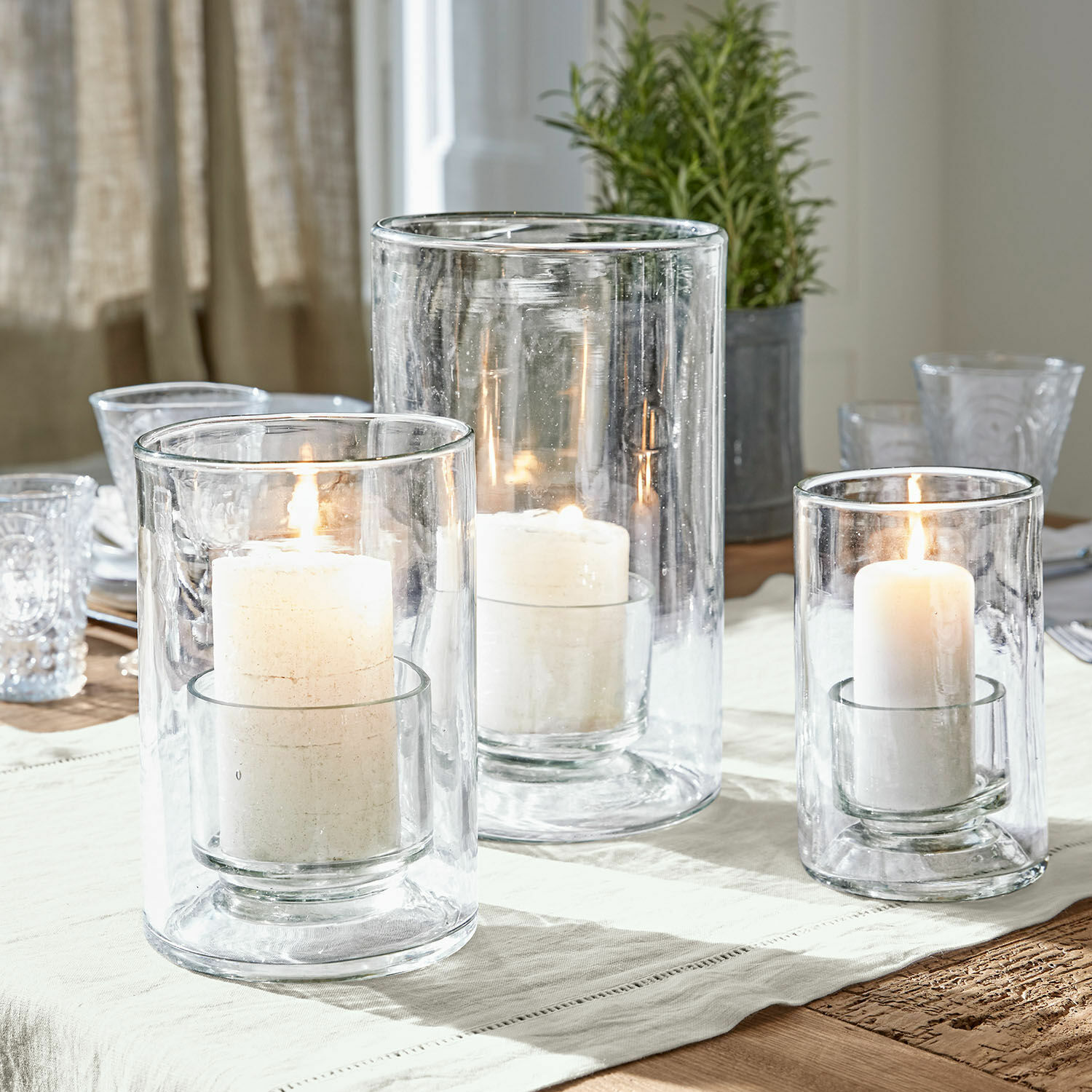 Wenn Sie auf der Suche nach der perfekten Art und Weise sind, um in Ihrem Zuhause eine magische Atmosphäre zu schaffen, dann sind diese Windlichter genau das Richtige! Ob einzeln oder als Trio präsentiert, machen diese Schmuckstücke mit ihrer harmonischen Linienführung immer eine elegante Figur. Ihre zurückhaltende Schönheit fügt sich nahtlos in jedes Interieur ein. Dieses Set ist somit perfekt für jeden besonderen Anlass, bei dem Eleganz und Klasse gefragt sind. Der integrierte Kerzenhalter-Einsatz bitet Teelichter oder Stumpenkerzen perfekten Halt. Daneben findet weitere Deko einen perfekten Platz. Vielleicht füllen Sie den Platz mit Moos, Glasperlen oder Blüten auf. Saisonal geschmückt zieren die Windlichter jeden Platz in Ihrem Zuhause.