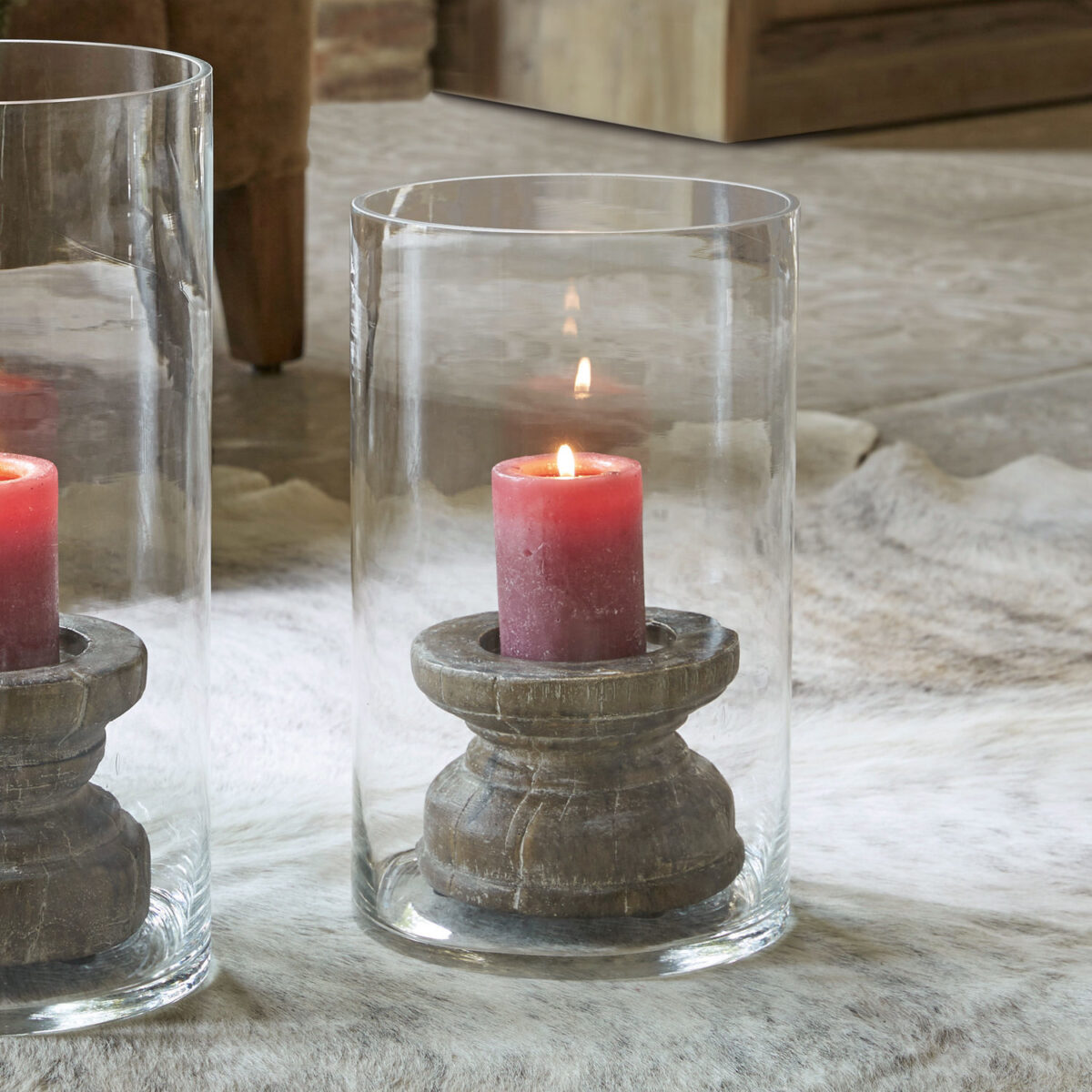 Es geht nichts über simples Kerzenlicht, um beim Abendessen mit der Familie oder während einer schicken Dinnerparty mit Freunden eine besonders angenehme Stimmung zu erzeugen. Es ist eine Wärme und Behaglichkeit, die schwer in Worte zu fassen ist. Dieses bezaubernde Windlicht besteht aus zwei Teilen, die perfekt aufeinander abgestimmt sind. Das Glas verfügt über eine klassische zylindrische Silhouette und schützt die Flamme. Im Innern steht ein Kerzenhalter, der in traditioneller Handarbeit entsteht. Er wirkt zwar wie aus Holz geschnitzt, doch in Wirklichkeit handelt es sich um Kunststein. Das erhöht die Langlebigkeit, denn im Gegensatz zu Holz, ist Kunststein absolut feuerfest. Die Oberfläche wurde aufwendig veredelt und mit einer raffinierten Struktur versehen. Dadurch erhält jedes Stück seinen faszinierenden Unikat-Charakter.