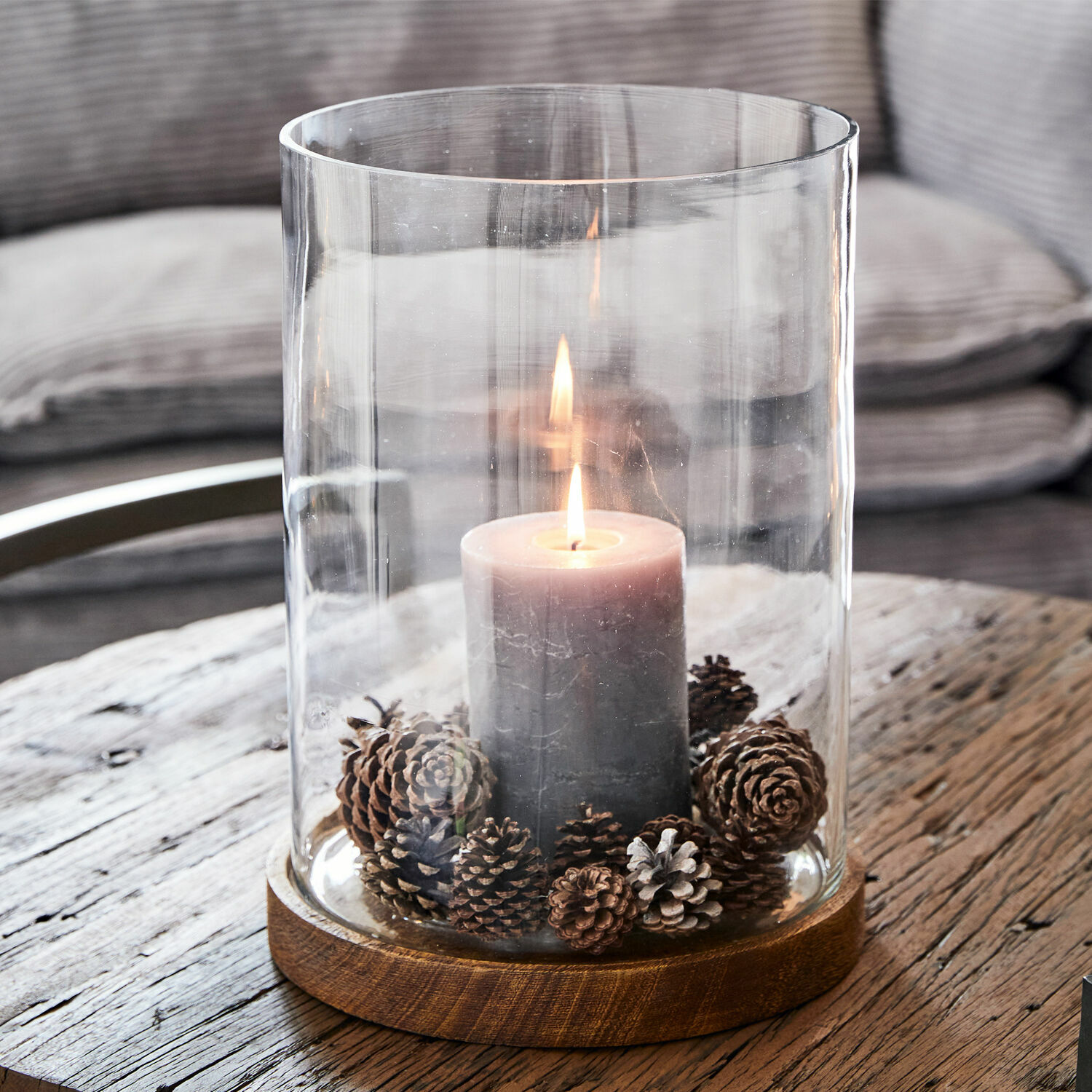 Ein zeitloses Design von klassischer Eleganz – genießen Sie den natürlichen Mix aus wertvollem Mangoholz und Glas. Das gläserne Element ist abnehmbar, es steht auf dem hölzernen Untersatz, welches ein glänzendes Finish ziert. So tritt die natürliche Holzmaserung noch einmal ganz besonders klar hervor. Dieses hochwertige und attraktive Windlicht spendet immer und überall warmen Kerzenschein, ob beim Film am Abend oder zum Sonntagsfrühstück. Es schmeichelt jedem Interieur und harmoniert mit vielen Wohnstilen wie etwa dem Landhaus-Look. Und wenn Sie selbst kreativ werden wollen, können Sie im Inneren des Glases sehr individuelle Dekorationen mit oder ohne eine Kerze erschaffen, vielleicht mit Blüten, Potpourris, Kristallen oder Muscheln. So lassen sich in jeder Saison passende und ganz persönliche Deko-Effekte erzielen. Praktisch, dass das Windlicht ganz ohne Deko zu Ihnen nach Hause kommt, sodass Sie sich hier selbst kreativ austoben können.