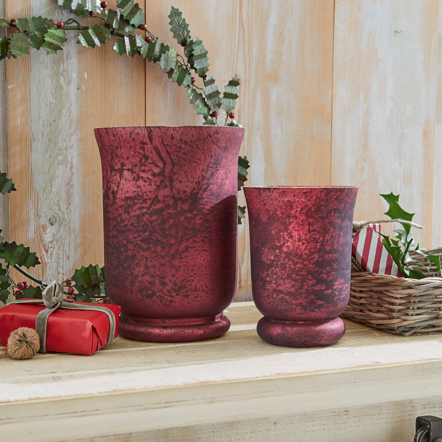 Gemütliche Beleuchtung und ein edler Deko-Akzent bietet Ihnen dieses hübsche Doppel aus Glas in dezenter Kelchform. Zaubern Sie ganz leicht noch mehr Stil und Charme in Ihr Zuhause und freuen Sie sich auf zwei Schmuckstücke, die mit einem reizenden, abwechselnden Finish bezaubern. Innen erwartet Sie ein glänzendes Finish, außen ist es matt. Durch die feine Tönung des Glases entsteht eine besonders heimelige Atmosphäre. Das Duo in zwei Größen kommt bereits als fertig kombiniertes Set zu Ihnen und versprüht pure Harmonie. Stellen Sie einfach nur Teelichter ein und machen Sie es sich zu Hause ganz entspannt schön. Das attraktive Doppel ist ein gekonnter Akzent zu vielen Wohnstilen und lässt sich auch als Aufbewahrung oder kleine Vase nutzen. Auf der Fensterbank, einer Konsole, neben der Badewanne oder auf dem Tisch platziert macht es eine gute Figur.