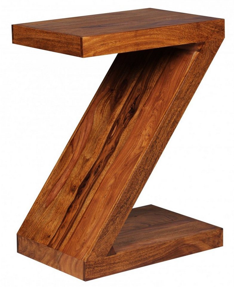 Wofür geeignet? Mit einer Höhe von 59 cm ist der Tisch individuell einsetzbar – Durch die Z Form entsteht ein weiteres Ablagefach für Zeitungen oder weitere Gegenstände. Pflegehinweise: Die Oberfläche mit einem lauwarm angefeuchteten Baumwolltuch reinigen, Keine Scheuermittel, scharfe Reinigungsmittel oder tropfnasse Tücher verwenden, Keine weitere Behandlung der naturbelassenen Oberfläche (Ölen, Wachsen) notwendig DesignModerner Massivholz Beistelltisch Extravagante Z Form Massivholz Große AblageflächeAbmessungenBreite: 44 cmHöhe: 59 cmTiefe: 30 cmHolzstärke: 5 cmBesonderheitenGefertigt in Handarbeit Jeder Tisch ein Unikat Auch als Zeitungsständer oder Standregal verwendbarMaterialSheeshamLieferumfang1 Beistelltisch Lieferung ohne DekorationDa es sich um Handarbeit und um ein Naturprodukt handelt kann es zu Farbabweichungen oder Unebenheiten kommenMontageLieferzustand: Montiert