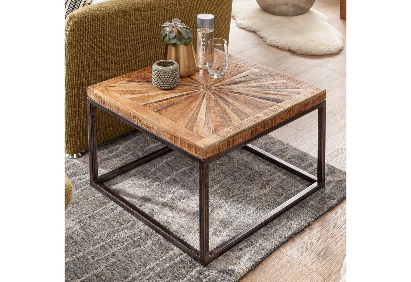 DesignAuffälliger Couchtisch im modernen DesignBeeindruckende Tischplatte dank der schönen Maserung des MangoholzesGroße Ablagefläche für verschiedene Utensilien wie Zeitschriften, Knabbereien und FernbedienungAbmessungenBreite: 55 cmHöhe: 40,5 cmTiefe: 55 cmStärke der Tischplatte: 4 cmMetallstärke: 2 cmWeitere Abmessungen finden Sie in der BeschreibungMaximale Belastbarkeit: 45 kgFarbeTischplatte: BraunTischgestell: Schwarz mattBesonderheitenJeder Sofatisch wurde in liebevoller Handarbeit gefertigt und ist somit ein absolutes UnikatHohe Stabilität dank der gut durchdachten BeinkonstruktionDie Beine sind durch die Pulverbeschichtung stoß- und kratzfestTipp: Mit kleinen Filzstreifen an den vier Unterkanten steht der Tisch weich auf jedem BodenbelagWir empfehlen die Oberflächen vor der ersten Benutzung mit klarem Schutzlack zu lackieren, um Wasserrändern vorzubeugenMaterialTischplatte: Naturbelassenes Mango MassivholzBeingestell: Schwarz pulverbeschichteter EdelstahlLieferumfangEin Wohnzimmertisch ohne DekorationMontageLieferzustand: komplett montiert und sicher verpacktPflegehinweiseDie Oberfläche mit einem lauwarm angefeuchteten Baumwolltuch reinigen. Kein Scheuermittel, scharfe Reinigungsmittel oder tropfnasse Tücher verwenden.