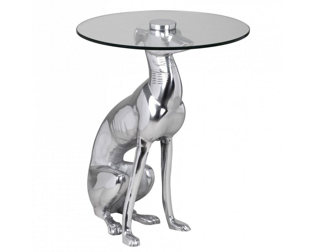 DesignDesign BeistelltischWindhundskulptur als Tischgestell4 Füße für sicheren StandGlasplatte als AblageAbmessungen in cm ca. Höhe: 50 cmBreite: 40 cmTiefe: 40 cmStärke der Glasplatte: 0,5 cmWeitere Abmessungen siehe BilderBesonderheitenGefertigt in HandarbeitJedes Stück ein UnikatTischplatte muss montiert werdenFarbeSilberMaterialGestell: AluminiumTischplatte: GlasLieferumfang1 BeistelltischLieferung ohne DekorationMontage:Lieferzustand: praktisch zerlegt und praktisch verpacktLeicht verständliche Montageanleitung inklusiveEinfacher und schneller Aufbau dank gut durchdachter Konstruktion