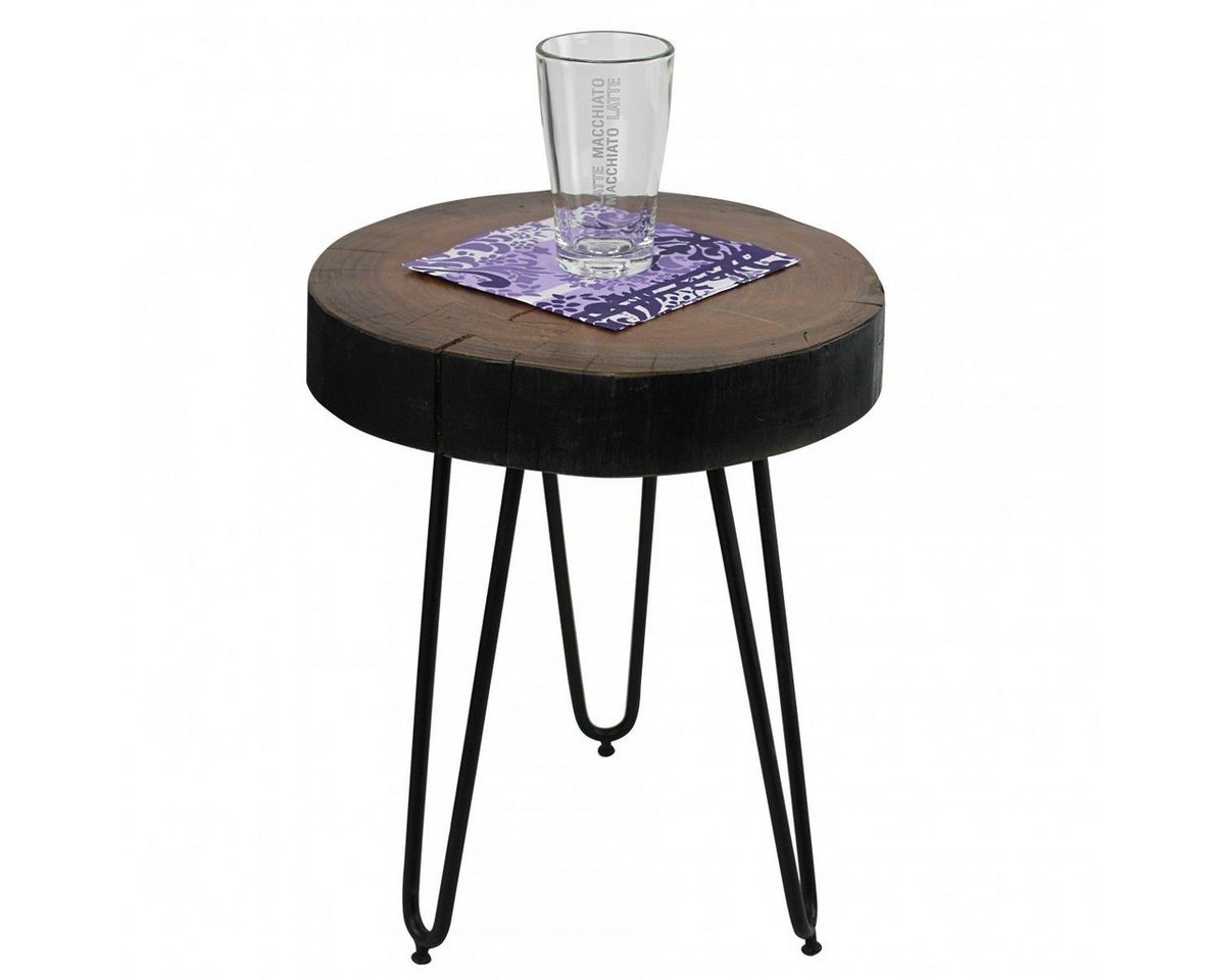 DesignModerner Beistelltisch, klassisches DesignStilvolle und markante MaserungDrei formschöne Tischbeine aus MetallTischplatte in Baumstamm-OptikAbmessungenBreite: 30 cmHöhe: 40 cmTiefe: 30 cmHolzstärke: 5 cmFarbeHolzfarben (Sheesham)BesonderheitenMaximale Belastbarkeit: 30 kgGefertigt in liebevoller Handarbeit – jeder Tisch ein UnikatMaterialmix und Farbgebung sorgen für warmes AmbienteMaterialTischplatte: Massivholz Sheesham (Rosenholz)Tischbeine: MetallDa es sich um Handarbeit und um ein Naturprodukt handelt, kann es zu Farbabweichungen oder Unebenheiten kommenPflegehinweisOberfläche mit einem lauwarm angefeuchteten Baumwolltuch reinigen. Keine Scheuermittel, scharfen Reinigungsmittel oder nassen Tücher verwenden. Keine weitere Behandlung der naturbelassenen Oberfläche (Ölen, Wachsen) notwendig.LieferumfangEin Beistelltisch ohne DekorationMontageLieferzustand: zerlegt und praktisch verpackt // leicht verständliche Montageanleitung inklusive // einfacher und schneller Aufbau dank gut durchdachter Konstruktion