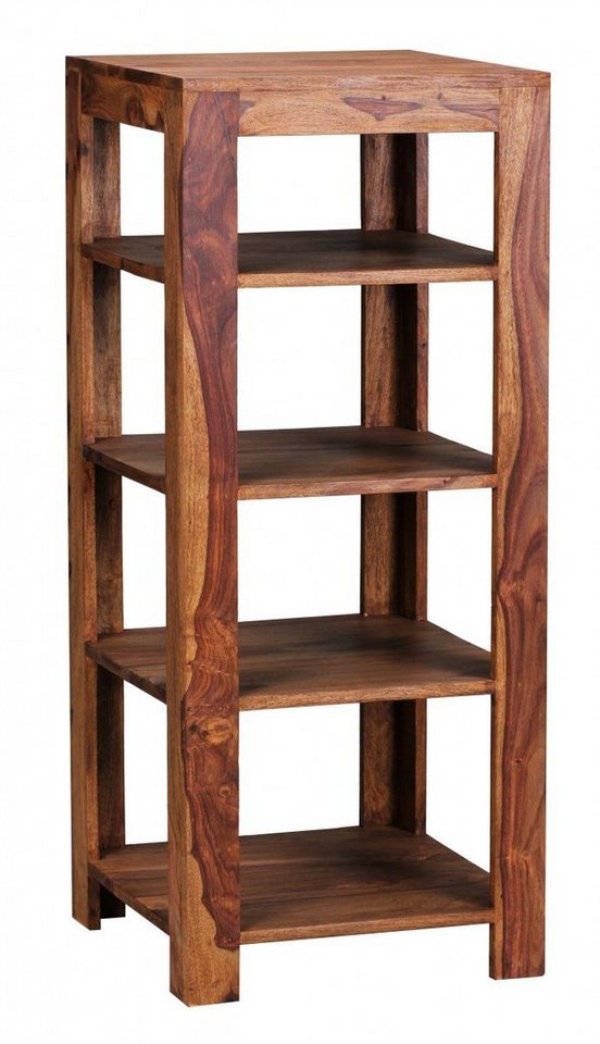 Wofür geeignet? Der Artikel lässt sich als Regal für Dekoartikel oder Bücher verwenden – Ideal als Abstellmöglichkeit in Ecken platzierbar – Ablagefächer als zusätzlicher Stauraum Pflegehinweise: Die Oberfläche mit einem lauwarm angefeuchteten Baumwolltuch reinigen, Keine Scheuermittel, scharfe Reinigungsmittel oder tropfnasse Tücher verwenden, Keine weitere Behandlung der naturbelassenen Oberfläche (Ölen, Wachsen) notwendig DesignAttraktives Regal mit einzigartiger Maserung4 Böden als zusätztliche AblageAbmessungenHöhe: 105 cmBreite: 44 cmTiefe: 44 cmHöhe Fach 1: 15 cmHöhe Fach 2: 22,5 cmHöhe Fach 3 : 23 cmHöhe Fach 4: 26 cmAbstand Boden bis erstes Fach: 7 cmFarbeSheesham Besonderheiten:Gefertigt in HandarbeitJedes Regal ein UnikatMaterialMassivholz SheeshamDa es sich um Handarbeit und um ein Naturprodukt handelt kann es zu Farbabweichungen oder Unebenheiten kommenLieferumfang1 StandregalLieferung ohne DekorationMontageLieferzustand: montiert