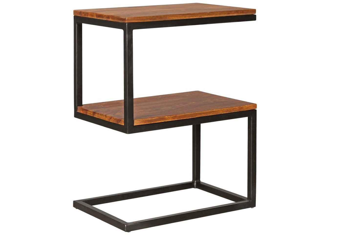 DesignAnstelltisch in Form eines &#34,S&#34,Moderner Beistelltisch mit MetallgestellNatürliche Maserung des EdelholzesZwei Ablageflächen bieten viel PlatzAbmessungenBreite: 45 cmHöhe: 60 cmTiefe: 30 cmAbstand zwischen den Ablagen: 26 cmMaximalbelastbarkeit pro Platte: 40 kgFarbeTischplatte: SheeshamfarbenGestell: Matt schwarzBesonderheitenHolzschutz bietet die Schutzlackversiegelung der OberflächenDie Tische wurden in liebevoller Handarbeit gefertigtDie individuelle Maserung des Holzes macht jedes Teil zu einem UnikatMaterialAblagen: Sheesham MassivholzTischgestell: Pulverbeschichtetes MetallLieferumfangEin Beistelltisch ohne DekorationMontageLieferzustand: Montiert, kein Aufbau nötigPflegehinweiseDie Oberfläche mit einem lauwarmen angefeuchtetem Baumwolltuch reinigen – kein Scheuermittel, scharfe Reinigungsmittel oder tropfnasse Tücher verwenden. Keine weitere Behandlung der naturbelassenen Oberfläche (ölen oder wachsen) notwendig.