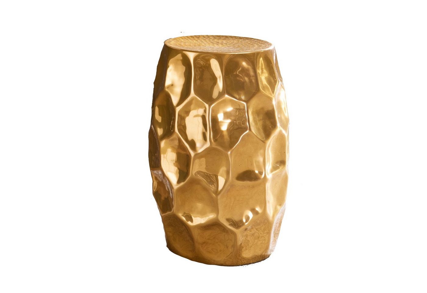 DesignAußergewöhnlicher Dekotisch im orientalischen DesignWunderschöne Hammerschlag-Strukturen auf der AblageflächeDurch die großen Wölbungen ist der Tisch ein absolutes HighlightAbmessungenBreite: 30 cmHöhe: 47 cmTiefe: 30 cmDurchmesser der Ablagefläche: 24 cmDurchmesser der Standfläche: 24,5 cmFarbeKompletter Tisch: GoldfarbenBesonderheitenEmpfohlene max. Belastbarkeit: 15 kgDurch liebevolle Handarbeit ist jeder Beistelltisch ein absolutes UnikatDa die Unterkante nach innen gefalzt ist, sind scharfe Kanten vermieden wordenHohe Stabilität durch das hochwertig verarbeitete Aluminium und die runde FormAufgrund der Handarbeit machen einzelne kleine Dellen die Dekotische zu absoluten EinzelstückenMaterialKompletter Anstelltisch: AluminiumPflegehinweiseDie Oberfläche mit einem lauwarm angefeuchteten Baumwolltuch reinigen. Bitte keine harten Bürsten oder Metallschwämme verwenden, da diese Kratzer im Metall verursachen. Keine Scheuermittel, scharfen Reinigungsmittel oder tropfnassen Tücher verwenden.LieferumfangEin Beistelltisch ohne DekorationMontageLieferzustand: Montiert und sicher verpackt