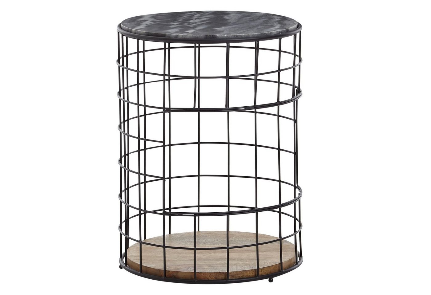 DesignRunder Beistelltisch in modernem DesignTischplatte mit edler MarmorstrukturKorbgestell mit praktischer ÖffnungRobustes Akazienholz dient als BodenplatteAbmessungenBreite: 38 cmTiefe: 38 cmHöhe: 50 cmTischplattenstärke: 1,5 cmÖffnung (BxH): 34,5 x 20 cmHolzstärke: 1,5 cmFarbeTischplatte und Gestell: SchwarzBodenplatte: BraunBesonderheitenJeder Tisch wurde in liebevoller Handarbeit gefertigt und ist somit ein absolutes UnikatTischplatte besteht aus echtem MarmorDurch die Öffnung besitzt der Tisch zusätzlichen Stauraum für z.B. Kissen oder DeckenZeitschriften, Handy und Co. finden auf der Marmorplatte ihren PlatzEmpfohlene Maximalbelastbarkeit: 20 kgMaterialTischplatte: indischer Mercury MarmorMetallgestell: lackiertes EisenBodenplatte: Akazie Massivholz, mit Klarlack beschichtetLieferumfangEin Beistelltisch ohne DekorationMontageLieferzustand: komplett montiert und sicher verpacktPflegehinweiseWischen Sie den Marmor regelmäßig trocken ab (Fensterleder ist hierfür ideal geeignet), damit dieser seine glänzende Oberfläche behält. Die Reinigung sollte mit kreisenden &, sanften Bewegungen durchgeführt werden, damit die Oberfläche nicht verkratzt.