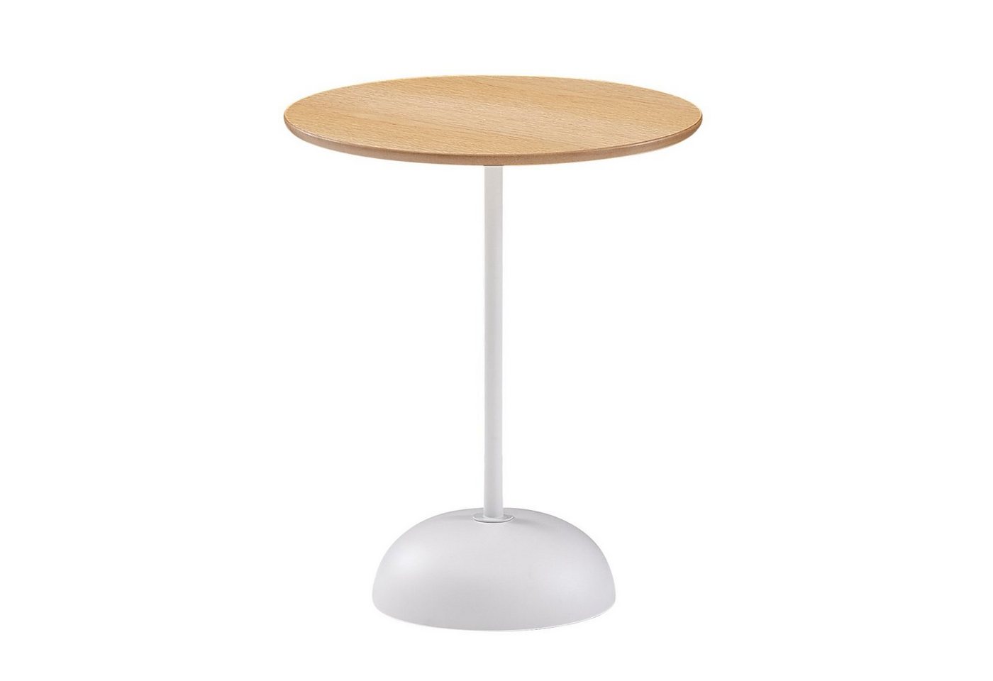 DesignSchlichter Beistelltisch in modernem DesignRunde Tischplatte mit EichenfurnierAusdrucksstarke HolzmaserungFester Stand dank des robusten MetallgestellsAbmessungenBreite: 40 cmTiefe: 40 cmHöhe: 48 cmTischplattenstärke: 1,5 cmDurchmesser Standbein: 24 cmWeitere Abmessungen finden Sie im MaßbildFarbeTischplatte: BraunUntergestell: WeißBesonderheitenTisch bietet viel Platz zur Ablage von Zeitschriften, Handy und Co.Aufgrund des schlichten Designs mit vielen Einrichtungsstilen kombinierbarDank der Pulverbeschichtung ist das Gestell stoß- und kratzfestTischplatte mit Furnier aus echtem EichenholzEmpfohlene Maximalbelastbarkeit: 3 kgMaterialTischplatte: MDF mit EichenfurnierMetallgestell: pulverbeschichteter StahlLieferumfangEin Beistelltisch ohne DekorationMontageanleitung und -material liegen der Lieferung beiMontageLieferzustand: teilmontiert, lediglich das Metallgestell muss aufgebaut und mit der Tischplatte verschraubt werdenPflegehinweiseDie Oberfläche mit einem lauwarm angefeuchteten Baumwolltuch reinigen. Keine Scheuermittel, scharfe Reinigungsmittel oder tropfnasse Tücher verwenden.