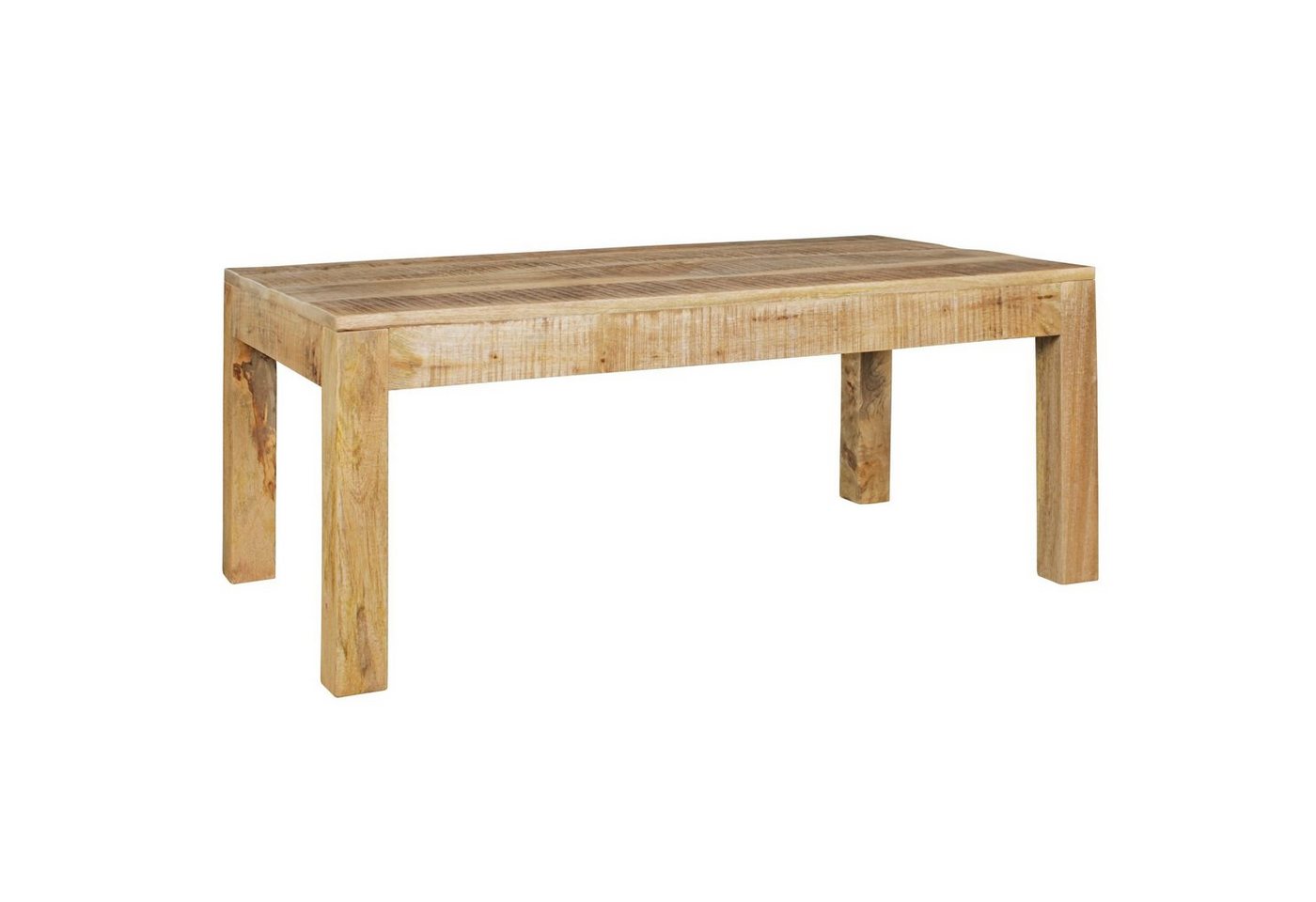 DesignCouchtisch im rustikalen LandhausstilGroße, rechteckige Tischplatte zur Ablage von diversen UtensilienFester Stand dank der massiven TischbeineAbmessungenBreite: 110 cmHöhe: 47 cmTiefe: 60 cmBeinstärke: 6,5 x 6,5 cmBoden bis Tischunterkante: 36 cmFarbeKompletter Tisch: Holzfarben (mit weichen Farbakzenten durch die Maserung)BesonderheitenEmpfohlene max. Belastbarkeit: 50 kgFarb- und Strukturverlauf ist bei jedem Tisch einzigartig Durch die Fertigung in reiner Handarbeit ist jedes Stück ein UnikatBesonders pflegeleicht dank Schutzlack versiegelter OberflächeMaterialKompletter Tisch: Massivholz MangoPflegehinweiseDie Oberfläche mit einem lauwarmen angefeuchtetem Baumwolltuch reinigen. Keine Scheuermittel, scharfen Reinigungsmittel oder tropfnassen Tücher verwenden. Keine weitere Behandlung der naturbelassenen Oberfläche (Ölen oder Wachsen) notwendig.LieferumfangEin Couchtisch ohne DekorationMontageLieferzustand: Teilmontiert – Beine müssen angebracht werden