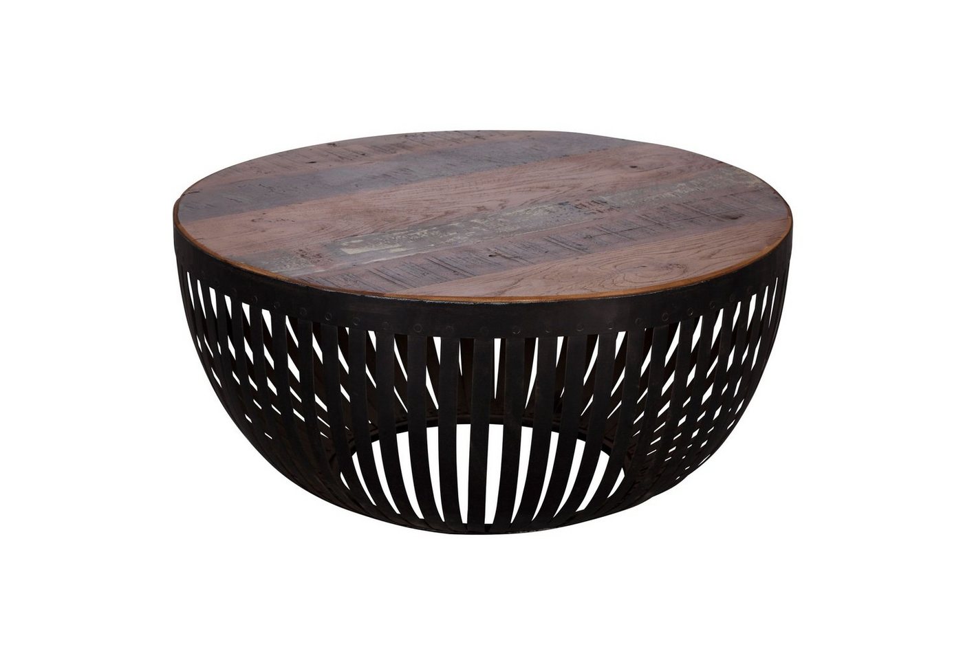 DesignExtravagantes Industrial-DesignRunde Tischplatte aus dunkel- und hellbraunem HolzSchwarzes Metallgestell gibt festen HaltAbmessungenBreite: 70 cmHöhe: 33 cmTiefe: 70 cmWeitere Maße können Sie dem entsprechenden Maßbild entnehmenFarbeTischplatte: Holzfarben (hell und dunkel)Metallgestell: Schwarz BesonderheitenEmpfohlene max. Belastbarkeit: 50 kgMarkante Farb- und Formgebung machen diesen Tisch zu einem EinzelstückViel Ablagefläche für dekorative Elemente, Magazine und GetränkeMaterialTischplatte: Recyceltes MangoholzGestell: Eisen (lackiert)PflegehinweiseDie Oberfläche mit einem lauwarm angefeuchteten Baumwolltuch reinigen. Keine Scheuermittel, scharfen Reinigungsmittel oder tropfnassen Tücher verwenden.LieferumfangEin Couchtisch ohne DekorationMontageFertig montiert, daher kein Aufbau nötig