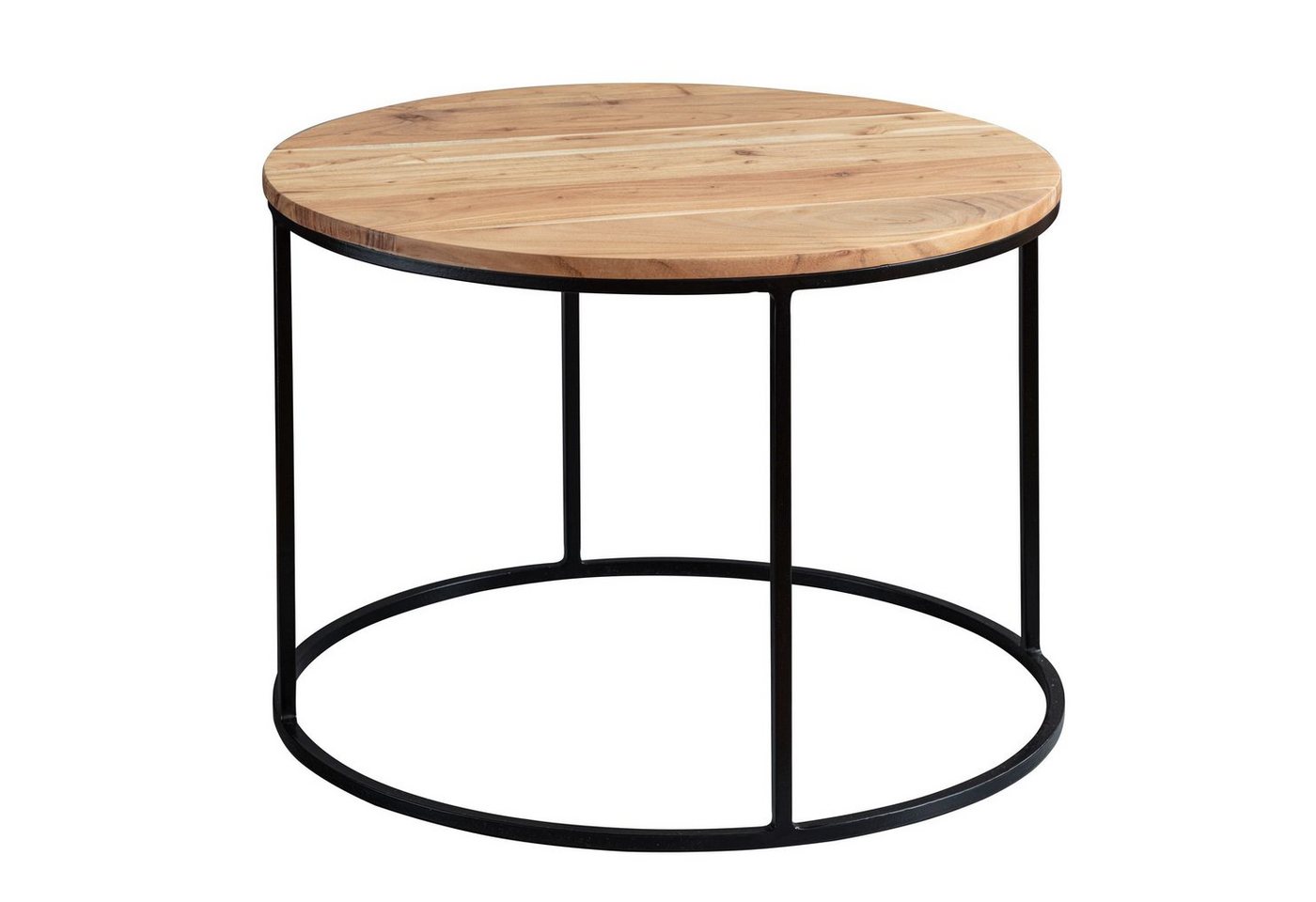 DesignSchicker und moderner Couchtisch im dezenten DesignRunde Ablagefläche bietet viel Platz zum Abstellen von diversen UtensilienElegante Tischplatte mit wunderschöner Maserung des AkazienholzesAbmessungenDurchmesser: 60 cmHöhe: 43 cmStärke der Tischplatte: 1,5 cmMetallstärke: 1 cmWeitere Abmessungen finden Sie im MaßbildMaximale Belastbarkeit: 50 kgFarbeTischplatte: BraunTischgestell: Schwarz mattBesonderheitenJeder Sofatisch wurde in liebevoller Handarbeit gefertigt und ist somit ein absolutes UnikatFester Stand dank des stabilen MetallgestellsDank der Pulverbeschichtung ist das Tischgestell stoß- und kratzfestWir empfehlen die Oberflächen vor der ersten Benutzung mit klarem Schutzlack zu lackieren, um Wasserrändern vorzubeugenMaterialTischplatte: Naturbelassenes Akazie MassivholzBeingestell: Schwarz pulverbeschichteter EdelstahlLieferumfangEin Wohnzimmertisch ohne DekorationMontageLieferzustand: komplett montiert und sicher verpacktPflegehinweiseDie Oberfläche mit einem lauwarm angefeuchteten Baumwolltuch reinigen. Kein Scheuermittel, scharfe Reinigungsmittel oder tropfnasse Tücher verwenden.