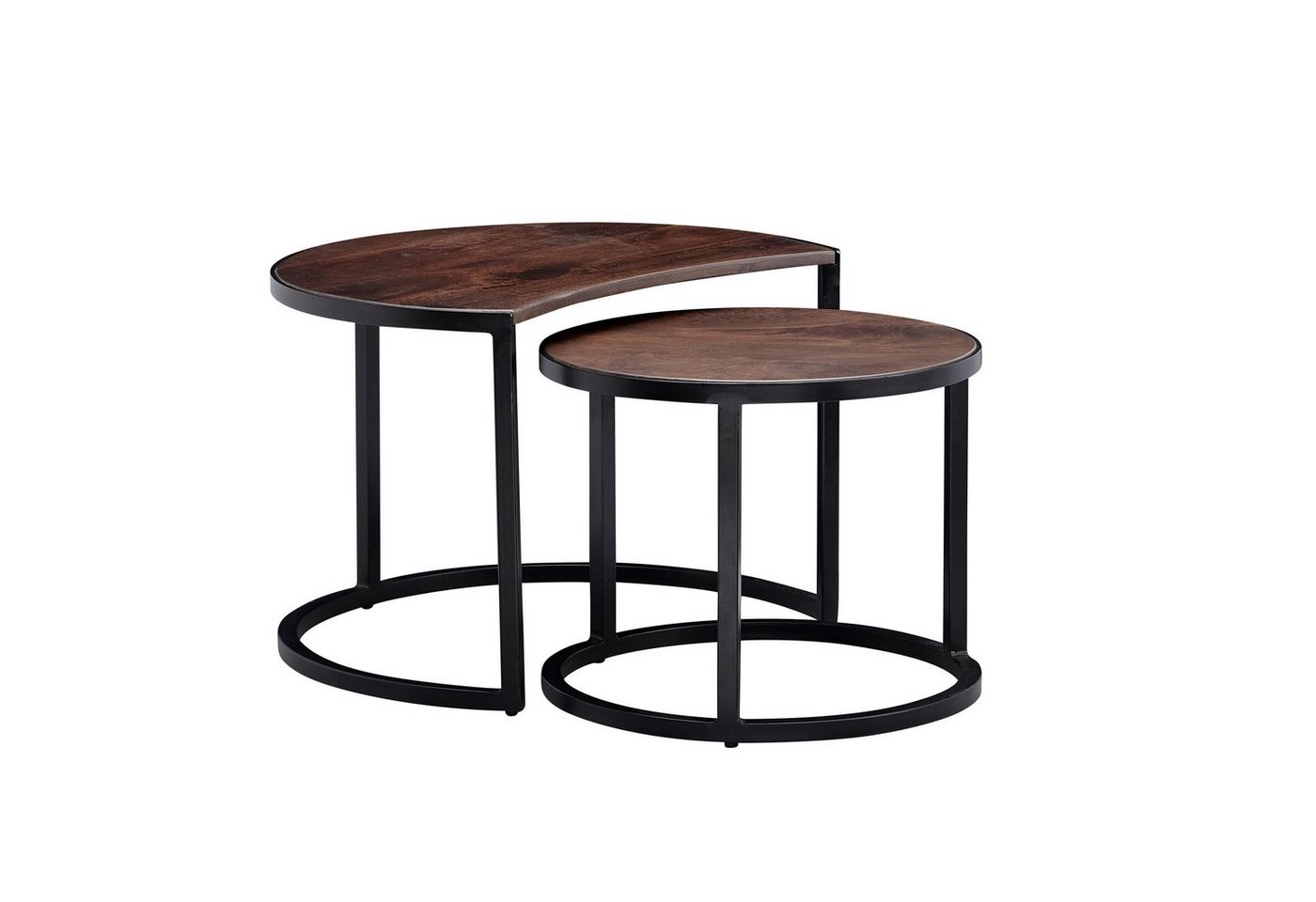 DesignRunde Beistelltische im aufregenden Industrial StyleStimmiger Materialmix aus Holz und MetallZwei Tische in unterschiedlichen GrößenAbmessungenGroßer Tisch:Breite: 60 cmHöhe: 41 cmTiefe: 41 cmTischplattenstärke: 1,5 cmMaximalbelastbarkeit: 15 kgKleiner Tisch:Breite: 44 cmHöhe: 36 cmTiefe: 44 cmTischplattenstärke: 1,5 cmMaximalbelastbarkeit: 10 kgFarbeTischplatten: DunkelbraunGestelle: SchwarzBesonderheitenJeder Tisch wurde in liebevoller Handarbeit gefertigt und ist somit ein unverwechselbares UnikatAufgrund der Handarbeit kann es zu leichten Farbabweichungen und Unebenheiten kommenDie Beistelltische lassen sich im Set oder auch einzeln verwendenDurch die offenen Gestelle lässt sich das Tischset platzsparend ineinanderschiebenAnti-Rutsch-Noppen schützen Ihren Fußboden und das Metall vor unschönen KratzernMaterialTischplatten: Mango Massivholz (dunkelbraun lackiert, zusätzlich mit Klarlack beschichtet)Gestelle: Pulverbeschichtetes EisenLieferumfangEin 2er Set Couchtische ohne DekorationMontageLieferzustand: komplett montiert und sicher verpacktPflegehinweiseDie Oberfläche mit einem lauwarmen angefeuchtetem Baumwolltuch reinigen. Keine Scheuermittel, scharfen Reinigungsmittel oder tropfnassen Tücher verwenden.