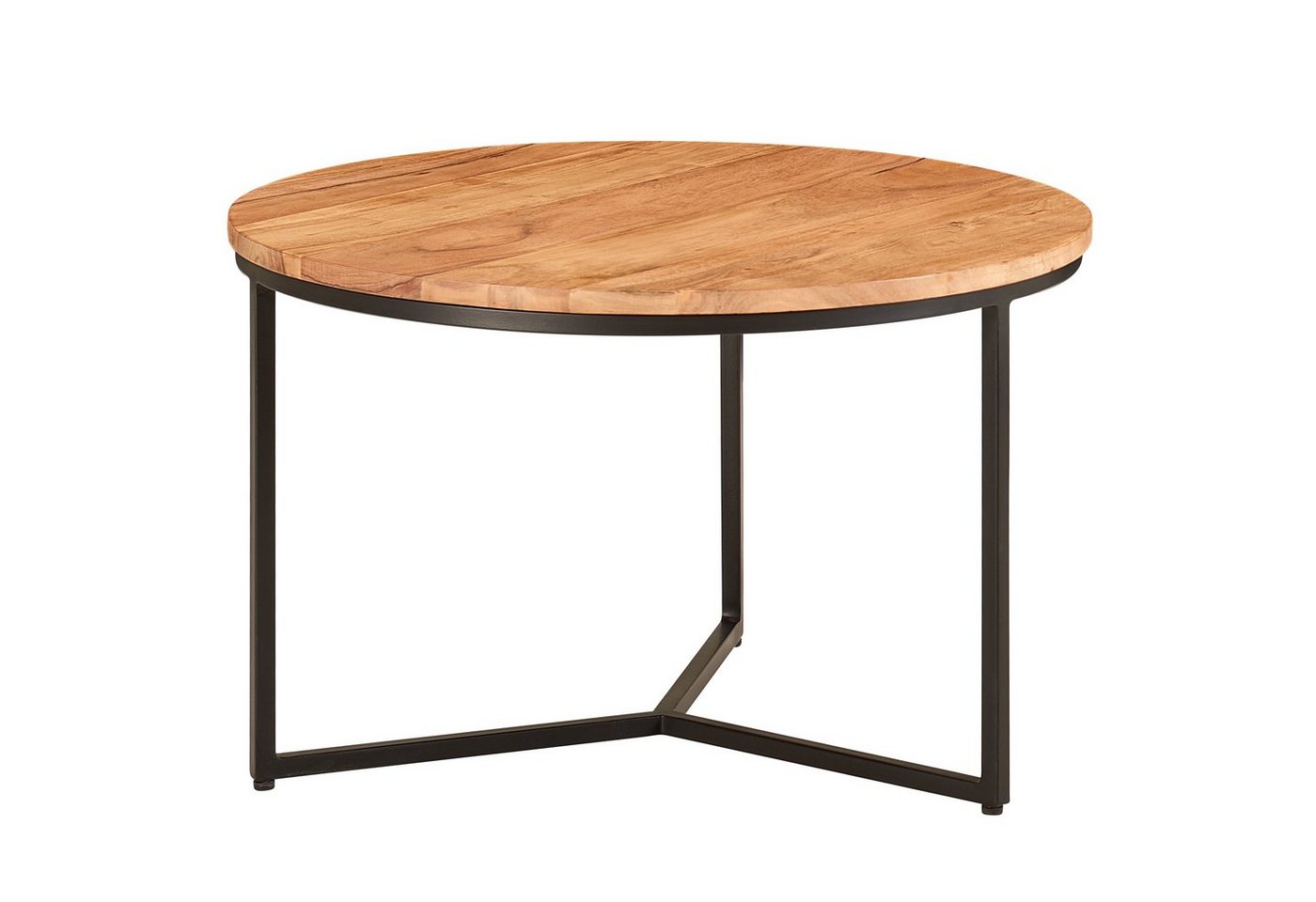 DesignEntzückender Couchtisch in modernem DesignGroße Ablagefläche bietet viel Platz für Zeitschriften, Fernbedienung und GetränkeElegante Tischplatte mit schöner Maserung des AkazienholzesRobustes Eisengestell stützt die massive HolzplatteAbmessungenBreite: 60 cmTiefe: 60 cmHöhe: 38 cmTischplattenstärke: 2 cmWeitere Abmessungen finden Sie im MaßbildMaximale Belastbarkeit: 12 kgFarbeTischplatte: BraunTischgestell: Schwarz mattBesonderheitenJeder Sofatisch wurde in liebevoller Handarbeit gefertigt und ist somit ein absolutes UnikatAufgrund des verwendeten Naturprodukts kann es zu leichten Farb- und Maßabweichungen kommenHohe Stabilität durch die gut durchdachte BeinkonstruktionDank der Pulverbeschichtung sind die Beine stoß- und kratzfestAnti-Rutsch-Noppen schützen Ihren Fußboden und das Metall vor unschönen KratzernMaterialTischplatte: Akazie Massivholz, mit Klarlack beschichtetBeingestell: Schwarz pulverbeschichtetes EisenLieferumfangEin Wohnzimmertisch ohne DekorationMontageLieferzustand: komplett montiert und sicher verpacktPflegehinweiseDie Oberfläche mit einem lauwarm angefeuchteten Baumwolltuch reinigen. Kein Scheuermittel, scharfe Reinigungsmittel oder tropfnasse Tücher verwenden.