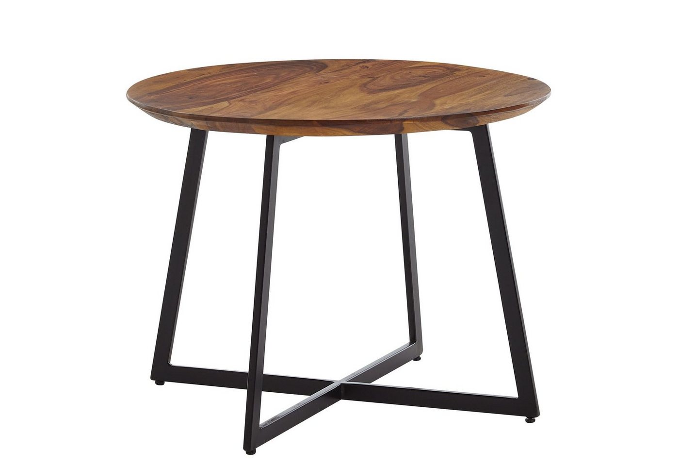 DesignRunder Couchtisch in modernem DesignToller Materialmix aus Massivholz und MetallTischplatte mit eleganter und ausdrucksstarker MaserungAbmessungenBreite: 60 cmTiefe: 60 cmHöhe: 45 cmTischplattenstärke: 2,5 cmFarbeTischplatte: DunkelbraunGestell: SchwarzBesonderheitenJeder Tisch wurde in liebevoller Handarbeit gefertigt und ist somit ein absolutes UnikatHolzschutz bietet die Schutzlackversiegelung der OberflächenSicherer Stand dank des robusten MetallgestellsAnti-Rutsch-Noppen an den Beinen schützen Ihren Fußboden und das Metall vor unschönen KratzernDie Maximalbelastbarkeit liegt bei ca. 40 kgMaterialTischplatte: Sheesham Massivholz, mit Klarlack beschichtetGestell: pulverbeschichteter EdelstahlLieferumfangEin Couchtisch ohne DekorationMontageLieferzustand: komplett montiert und sicher verpacktPflegehinweiseDie Oberfläche mit einem lauwarm angefeuchteten Baumwolltuch reinigen. Keine Scheuermittel, scharfe Reinigungsmittel oder tropfnasse Tücher verwenden.