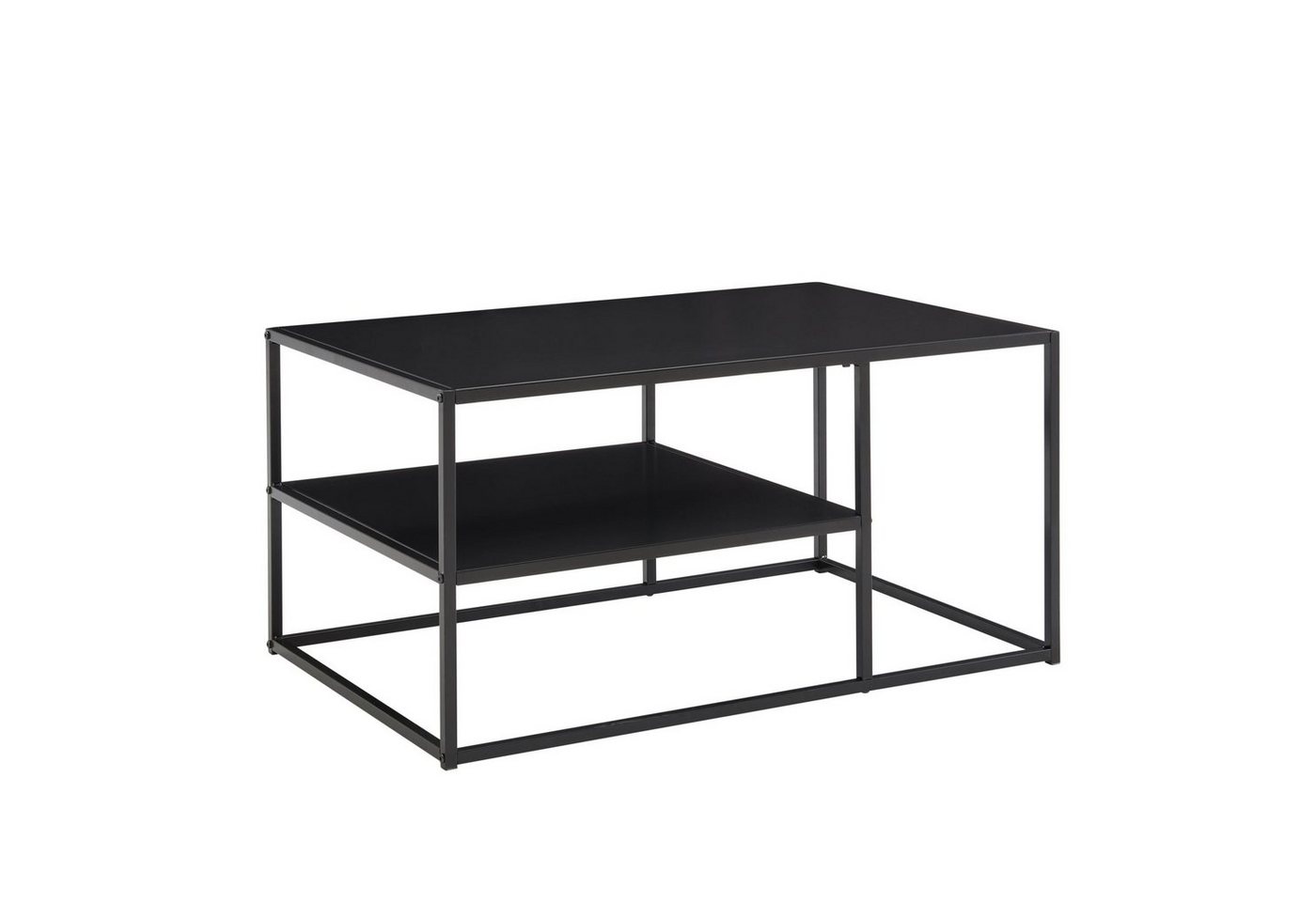 DesignRechteckiger Couchtisch im angesagten Industrial-StilEinheitliche Farbgebung des gesamten TischesInsgesamt zwei Ablageflächen für Snacks, Fernbedienungen und ZeitschriftenAbmessungenBreite: 90 cmTiefe: 60 cmHöhe: 45 cmAblagefach (BxHxT): 57 x 20 x 60 cmMaterialstärke Gestell: 1,5 cmWeitere Abmessungen finden Sie im MaßbildFarbeKompletter Tisch: SchwarzBesonderheitenZwei praktische Ablageflächen für effizienten RaumgewinnKunststoffkappen schützen Ihren Fußboden und das Metall vor unschönen KratzernEmpfohlene Maximalbelastbarkeit Tischplatte: 10 kg // Ablagefläche: 5 kgMaterialKompletter Tisch: lackierter StahlLieferumfangEin Wohnzimmertisch ohne DekorationMontageanleitung und -material liegen der Lieferung beiMontageLieferzustand: demontiert und sicher verpacktPflegehinweiseDie Oberfläche mit einem lauwarm angefeuchteten Baumwolltuch reinigen. Bitte keine harten Bürsten oder Metallschwämme verwenden, da diese Kratzer im Metall verursachen. Keine Scheuermittel, scharfen Reinigungsmittel oder tropfnassen Tücher verwenden.