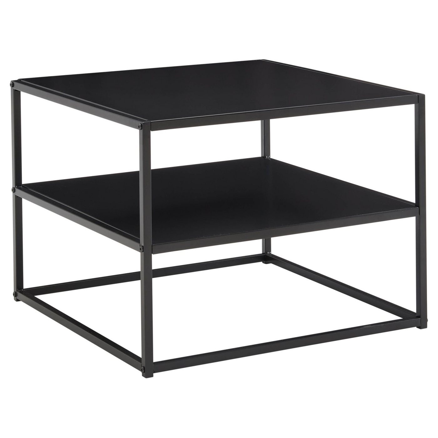 DesignQuadratischer Couchtisch im angesagten Industrial-StilEinheitliche Farbgebung des gesamten TischesInsgesamt zwei Ablageflächen für Snacks, Fernbedienungen und ZeitschriftenAbmessungenBreite: 60 cmTiefe: 60 cmHöhe: 45 cmAblagefach (BxHxT): 60 x 20 x 60 cmMaterialstärke Gestell: 1,5 cmWeitere Abmessungen finden Sie im MaßbildFarbeKompletter Tisch: SchwarzBesonderheitenZwei praktische Ablageflächen für effizienten RaumgewinnKunststoffkappen schützen Ihren Fußboden und das Metall vor unschönen KratzernEmpfohlene Maximalbelastbarkeit Tischplatte: 5 kg // Ablagefläche: 5 kgMaterialKompletter Tisch: lackierter StahlLieferumfangEin Wohnzimmertisch ohne DekorationMontageanleitung und -material liegen der Lieferung beiMontageLieferzustand: demontiert und sicher verpacktPflegehinweiseDie Oberfläche mit einem lauwarm angefeuchteten Baumwolltuch reinigen. Bitte keine harten Bürsten oder Metallschwämme verwenden, da diese Kratzer im Metall verursachen. Keine Scheuermittel, scharfen Reinigungsmittel oder tropfnassen Tücher verwenden.