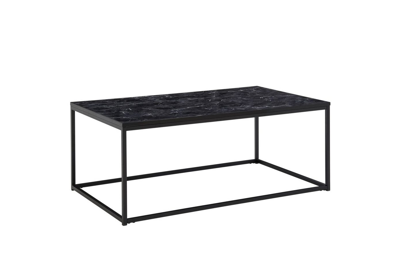 DesignRechteckiger Sofatisch in modernem DesignTischplatte sticht durch die anmutige Marmor-Optik hervorEinheitliche Farbgebung von Tischplatte und GestellAbmessungenBreite: 100 cmTiefe: 60 cmHöhe: 40 cmTischplattenstärke: 1,5 cmWeitere Abmessungen finden Sie im MaßbildFarbeTischplatte: Schwarz (Marmor-Hochglanz-Optik)Gestell: Schwarz (matt)BesonderheitenSicherer Stand dank des robusten MetallgestellsAufgrund des Designs lässt sich der Tisch in vielen Zimmern einsetzenEdles Flair dank der Marmor-OptikKunststoffkappen an den Beinen verhindern ein Verkratzen Ihres BodensEmpfohlene Maximalbelastbarkeit: 10 kgMaterialTischplatte: foliertes MDF (mit Polyresin-Beschichtung)Gestell: lackierter StahlLieferumfangEin Couchtisch ohne DekorationMontageanleitung und -material liegen der Lieferung beiMontageLieferzustand: zerlegt und sicher verpacktPflegehinweiseDie Oberfläche mit einem lauwarm angefeuchteten Baumwolltuch reinigen. Keine Scheuermittel, scharfe Reinigungsmittel oder tropfnasse Tücher verwenden.