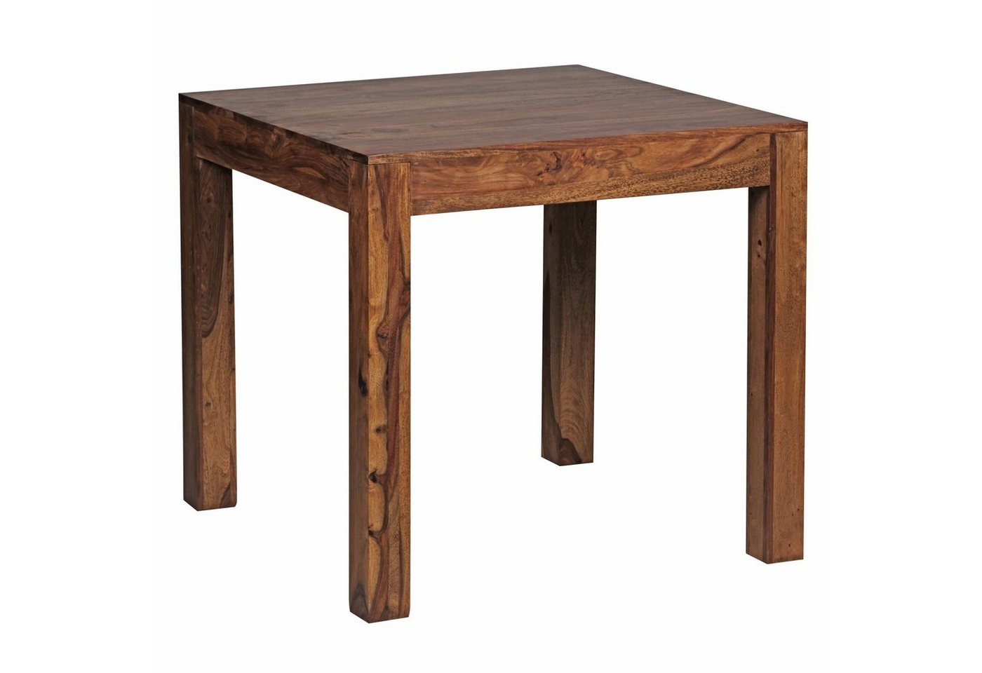 Sie sind auf der Suche nach einem modernen und praktischem Esstisch für Ihr zuhause? Massivholz Esstische von WOHNLING. Wofür geeignet? Durch die quadratische Form von 80 x 80 cm kann der Tisch ideal in kleinen Küchen oder Essbereichen platziert werden. Pflegehinweise: Die Oberfläche mit einem lauwarm angefeuchteten Baumwolltuch reinigen, Keine Scheuermittel, scharfe Reinigungsmittel oder tropfnasse Tücher verwenden, Keine weitere Behandlung der naturbelassenen Oberfläche (Ölen, Wachsen) notwendig DesignModerner Esstisch mit 4 stabilen StandbeinenDank der Maserung einzigartigAbmessungenBreite: 80 cmTiefe: 80 cmHöhe: 76 cmFüße: 7,5 x 7,5 cmBesonderheitenGefertigt in HandarbeitJeder Artikel ein UnikatDa es sich um Handarbeit und um ein Naturprodukt handelt kann es zu Farbabweichungen oder Unebenheiten kommenFarbeSheeshamMaterialMassivholz SheeshamLieferumfang1 EsstischLieferung ohne DekorationMontageLieferzustand: zerlegt und praktisch verpacktLeicht verständliche Montageanleitung inklusiveEinfacher und schneller Aufbau dank gut durchdachter Konstruktion