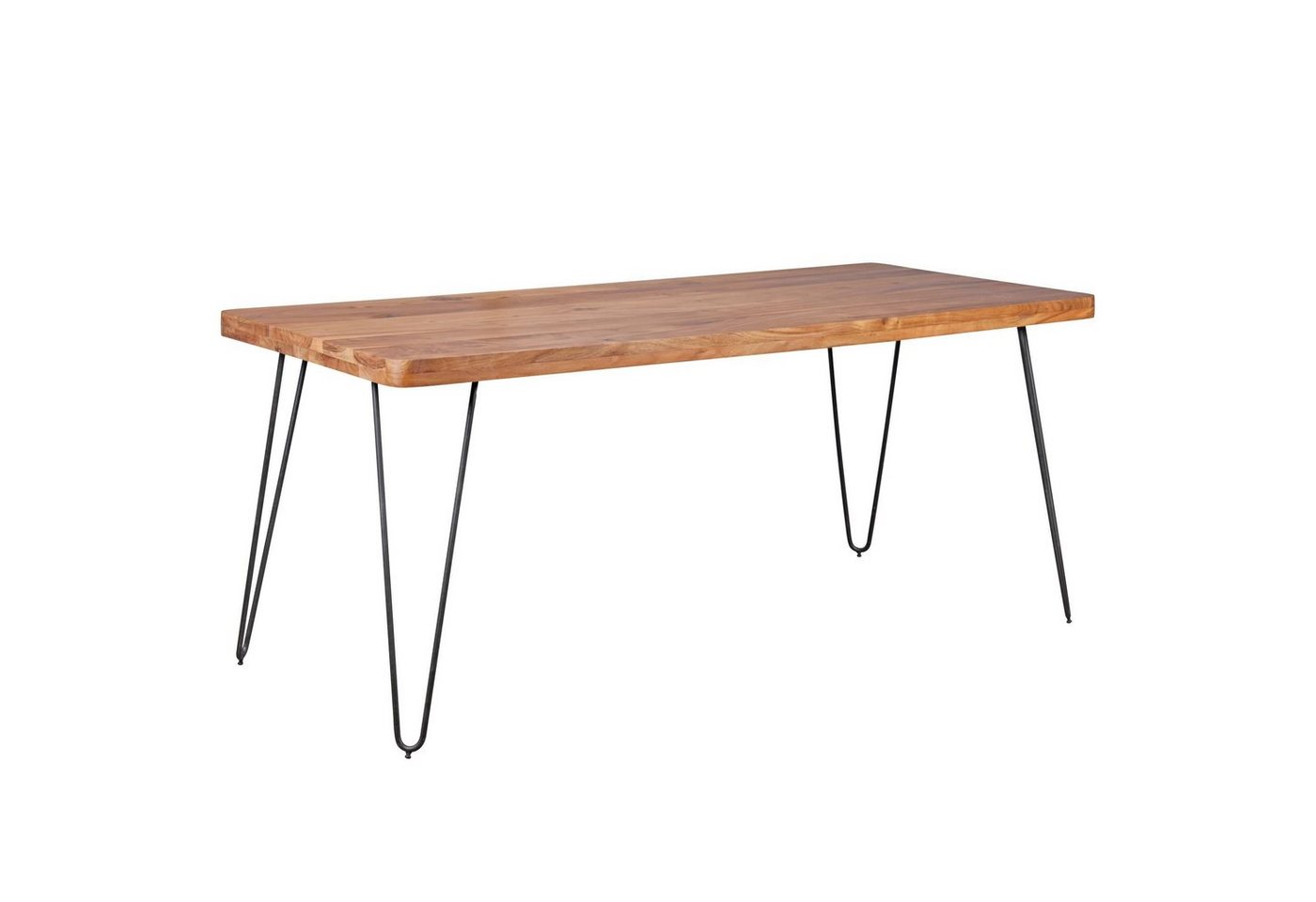 DesignEin Esstisch im modernen Design mit abgerundeten TischeckenRechteckige Tischlatte zur Ablage von Geschirr und diversen GegenständenVier stabile Metallbeine verleihen dem Tisch einen Industrial FlairAbmessungenBreite: 180 cmHöhe: 76 cmTiefe: 80 cmTischplattenstärke: 5 cmFarbeAkazieBesonderheitenDie große Tischplatte bietet viel Platz für Ihre Teller, Gläser und DekorationenDer Tisch wurde in liebevoller Handarbeit gefertigt und wird so, zu einem absoluten UnikatMaterialAkazie MassivholzBeine: MetallLieferumfangEin Esstisch ohne DekorationMontageLieferzustand: Teilmontiert, Beine müssen angebracht werdenPflegehinweiseDie Oberfläche mit einem lauwarmen angefeuchtetem Baumwolltuch reinigen, kein Scheuermittel, scharfe Reinigungsmittel oder tropfnasse Tücher verwenden, Keine weitere Behandlung der naturbelassenen Oberfläche (ölen oder wachsen) notwendig.