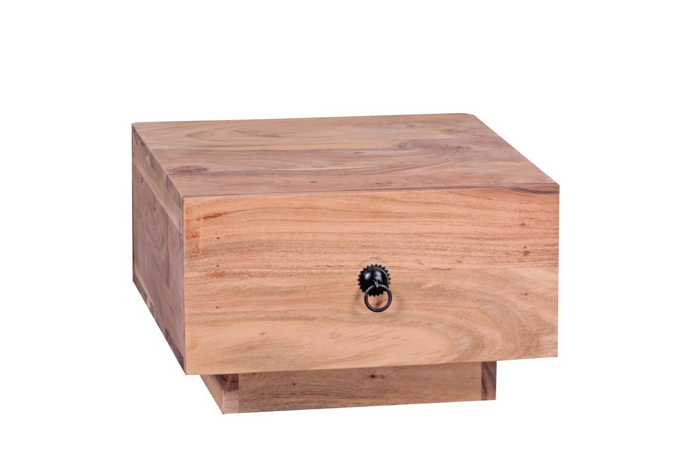 Sie sind auf der Suche nach einem modernen und praktischen Nachttisch für Ihr Schlafzimmer? Massivholz-Nachtkonsole von WOHNLING. Wofür geeignet? Ideale Ablagemöglichkeit durch eine große Ablagefläche und eine Schublade neben dem Bett. Pflegehinweise: Die Oberfläche mit einem lauwarm angefeuchteten Baumwolltuch reinigen. Keine Scheuermittel, scharfen Reinigungsmittel oder tropfnassen Tücher verwenden. Keine weitere Behandlung der naturbelassenen Oberfläche (Ölen, Wachsen) notwendig. DesignWunderschöner, geradliniger LandhausstilEinzigartige Maserung des massivem AkazienholzesMetall-Griff an der SchubladeMassiver StandblockAbmessungenBreite: 40 cmHöhe: 25 cmTiefe: 40 cmHöhe Schublade innen: 11 cmFußhöhe: 6 cmFarbeKompletter Nachtkasten: Holzfarben (Akazie)Griff: SchwarzBesonderheitenGefertigt in liebevoller Handarbeit – jeder Artikel ein absolutes UnikatPraktischer Schubladenstopp – verhindert das Herausfallen der SchubladeMaterialKompletter Nachtschrank: Massivholz Akazie (unbehandelt)Griff: Edelstahl (pulverbeschichtet)Da es sich um Handarbeit und ein Naturprodukt handelt, kann es zu Farbabweichungen oder Unebenheiten kommenLieferumfang Ein Nachttisch ohne DekorationMontageLieferzustand: Montiert