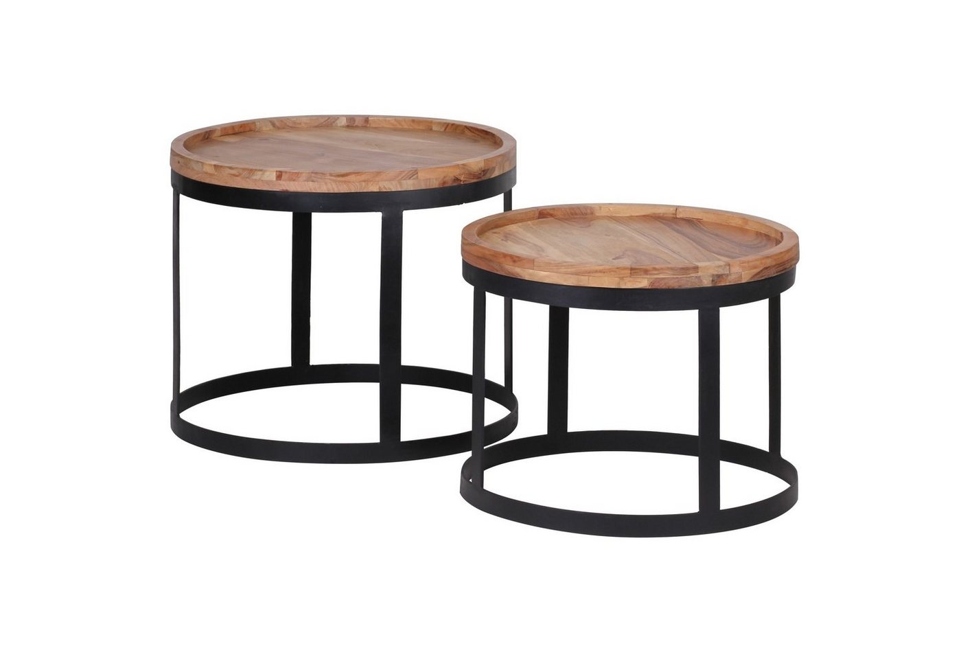 Wofür geeignet? Das 2er Set kann individuell im Wohnzimmer platziert werden – Die runden Tischplatten bieten ausreichend Platz – Rand außen an der Tischlatte  Pflegehinweise: Die Oberfläche mit einem lauwarm angefeuchteten Baumwolltuch reinigen, Keine Scheuermittel, scharfe Reinigungsmittel oder tropfnasse Tücher verwenden, Keine weitere Behandlung der naturbelassenen Oberfläche (Ölen, Wachsen) notwendig DesignModernes 2er Set Beistelltisch in klassischem DesignStilvolle Maserung sorgt für warmes AmbienteUntergestell aus MetallAbmessungen großer TischTiefe: 53 cmHöhe: 45 cmBreite: 53 cmAbmessungen kleiner TischTiefe: 48 cmHöhe: 40 cmBreite: 48 cmWeitere Abmessungen: Siehe BilderFarbeAkazie HolzBesonderheiten:Gefertigt in Handarbeit Jeder Tisch ein Unikat Tischplatte mit UmrandungMaterialBeistelltisch: Akazie MassivholzDa es sich um Handarbeit und um ein Naturprodukt handelt kann es zu Farbabweichungen oder Unebenheiten kommenLieferumfang2 BeistelltischeLieferung ohne DekorationMontageLieferzustand: Montiert