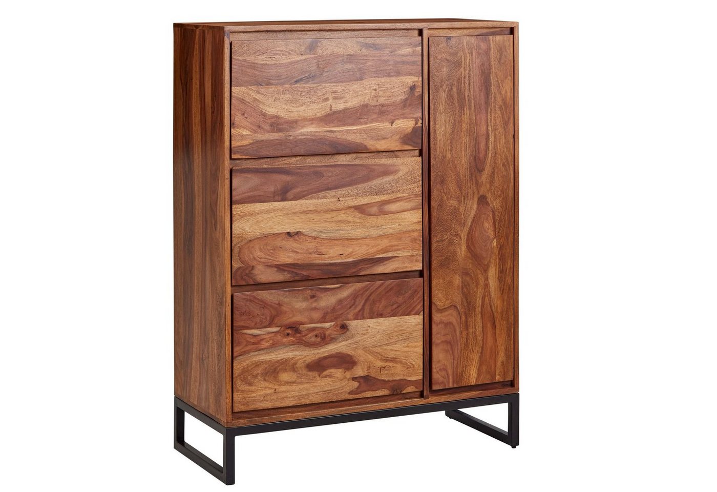 DesignMassiver Schuhschrank in modernem DesignGroße Ablagefläche für Deko, Schlüsselkorb, etc.Schuhschrank mit vier TürenElegante und ausdrucksstarke HolzmaserungAbmessungen Breite: 88 cmHöhe: 120 cmTiefe: 40 cmInnenabmessungen je großem Fach (BxHxT): 56 x 13,5 x 35,5 cmInnenabmessungen je kleinem Fach (BxHxT): 27 x 13,5 x 35,5 cmMaterialstärke Holz: 1,5 cmWeitere Abmessungen finden Sie im MaßbildFarbeKorpus: DunkelbraunBeine: SchwarzBesonderheitenJede Schuhkommode wurde liebevoll von Hand gefertigt und ist somit ein unverwechselbares UnikatDa es sich um Handarbeit und um ein Naturprodukt handelt kann es zu Farbabweichungen oder Unebenheiten kommenSchuhschrank ist hinten geschlossen, somit sind Ihre Wände vor Schmutz geschütztZusätzliche Ablagefläche auf dem Schuhschrank für Schlüsselkorb etc.Zwölf Schuhfächer mit fest verbauten Böden für insgesamt 24 Paar Schuhe (Angabe basierend auf Größe 42)Magnetstopper an den Türen verhindern, dass sich diese nicht ungewollt öffnenAnti-Rutsch-Noppen schützen Ihren Fußboden und das Metall vor unschönen KratzernEmpfohlene Maximalbelastbarkeit: 80 kgMaterialKorpus: Sheesham Massivholz, mit Klarlack beschichtetBeine: pulverbeschichteter EdelstahlLieferumfangEin Schuhschrank ohne DekorationMontageLieferzustand: komplett montiert und sicher verpacktPflegehinweisMit feuchtem Tuch, evtl. mit mildem Reinigungsmittel abwischen, mit trockenem Tuch nachwischen – keine scharfen oder lösungsmittelhaltigen Reiniger verwenden.