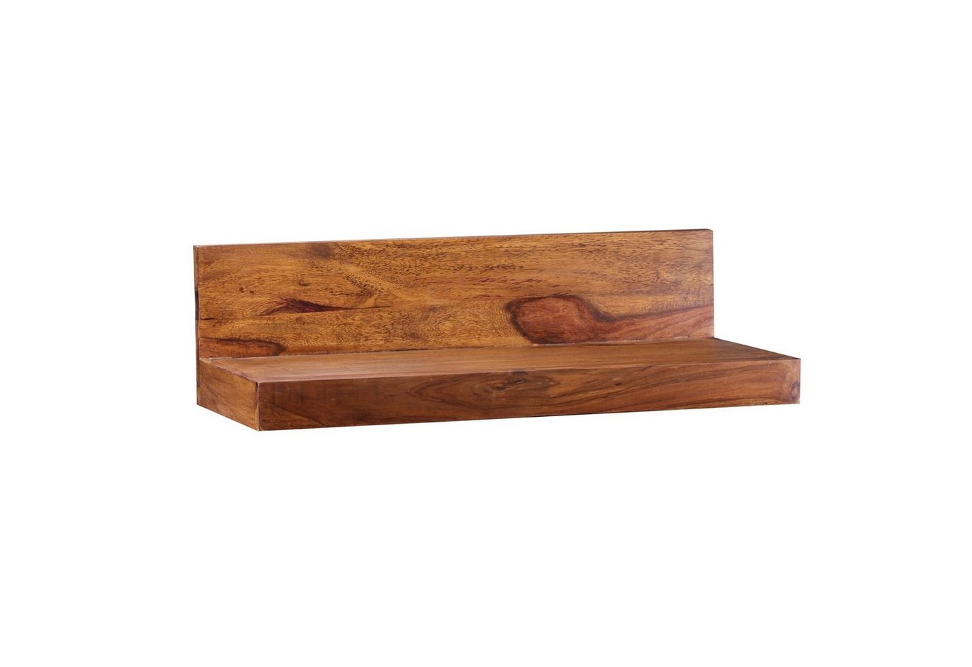 Wofür geeignet? Das Wandregal eignet sich ideal als Dekoregal über dem Fernseher oder im Flur – Montagematerial für Wandhalterung inklusive Pflegehinweise: Die Oberfläche mit einem lauwarm angefeuchteten Baumwolltuch reinigen, Keine Scheuermittel, scharfe Reinigungsmittel oder tropfnasse Tücher verwenden, Keine weitere Behandlung der naturbelassenen Oberfläche (Ölen, Wachsen) notwendig DesignModernes massives WandregalRückwand sowie starke AuflageflächeEinzigartige MaserungAbmessungenBreite: 60 cmHöhe: 17 cmTiefe: 22 cm +, 1 cmHolzstärke: 5 cmStärke Rückwand: 1 cmHöhe Rückwand: 12 cm Abstand der Aufhängungen an der Rückseite: 45,5 cmAbmessungen siehe auch BilderBesonderheitenKleinere Risse, Astlöcher und Farbunterschiede sind typisch für Massivholz, da es sich um ein Produkt der Natur handeltJedes Regal ist von Hand gefertigt – dadurch kann es zu Unebenheiten kommen, die jedes Wandregal zu einem Unikat machenZur Wandmontage Vorrichtung zur Wandmontage an der Rückseite des RegalsMaterialMassivholz SheeshamDa es sich um Handarbeit und um ein Naturprodukt handelt kann es zu Farbabweichungen oder Unebenheiten kommen !!!Lieferumfang1 Wandregal Material zur Wandmontage (2 Dübel +, 2 Schrauben)Lieferung ohne DekorationMontageLieferzustand: Montiert