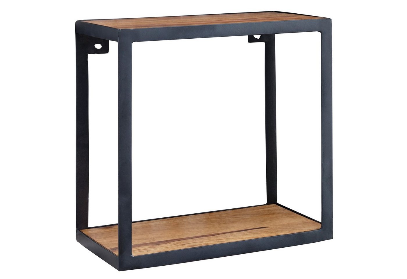 DesignDekoratives Wandregal in einem modern interpretierten, rustikalen LookHängeregal im angesagten Materialmix aus Holz und MetallAbmessungenBreite: 35 cmHöhe: 35 cmTiefe: 18 cmInnenmaße Regale: siehe DetailbildFarbeMetallgestell: SchwarzRegalboden: BraunBesonderheitenVielseitig einsetzbar z.B. für Alltagsgegenstände oder DekorationenDas von Hand hergestellte Möbelstück sorgt für eine individuelle Note in Ihrem ZuhauseHohe Stabilität durch das verarbeitete Massivholz in Kombination mit dem EisengestellViele Ablagemöglichkeiten im und auf dem RegalSowohl als Hängeregal und als Standregal nutzbarMaterialEinlegeböden: Sheesham MassivholzGestell: MetallLieferumfangEin Wandregal ohne Dekoration, ein Aufbau ist nicht nötig da das Regal bereits montiert geliefert wirdMontageLieferzustand: montiertPflegehinweisMit feuchtem Tuch, evtl. mit mildem Reinigungsmittel abwischen, mit trockenem Tuch nachwischen – keine scharfen oder lösungsmittelhaltigen Reiniger verwenden.