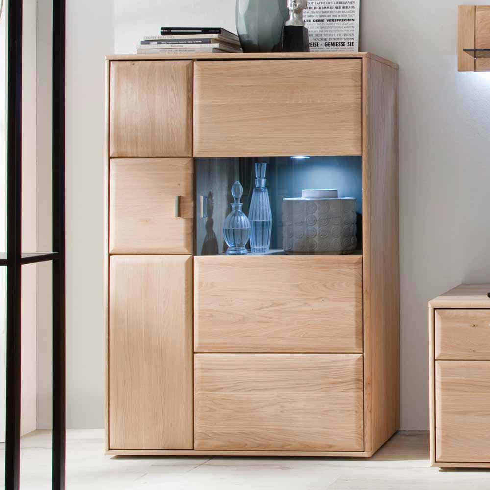 Wohnzimmer Highboard aus Eiche Bianco Glas LED Beleuchtung