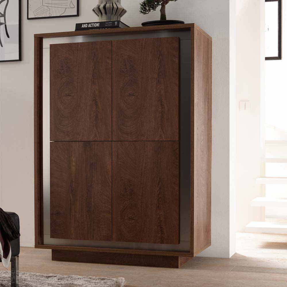 Wohnzimmer Highboard in Eiche Cognacfarben Edelstahl