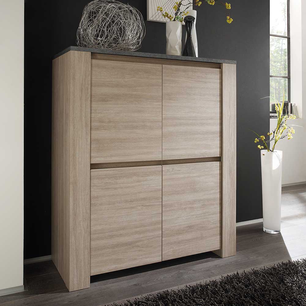 Wohnzimmer Highboard in Eiche gekälkt 4 türig