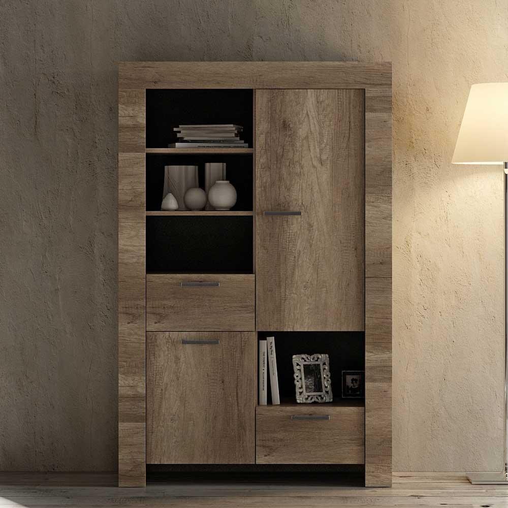 – Highboard Wildeichefarben – Wohnzimmerschrank Spanplatte – Kommode Modern – Esszimmerschrank Breite: 102 – Wohnzimmer schrank Höhe: 158 – Wohnzimmer kommode Tiefe: 43 – Highbord Mit zwei Schubladen und mit Metallauszug – Esszimmer kommode Schrank-Tür: mit Drehtüren – Wohnzimmer highboard 2-türig, Innenaufteilung: mit Einlegeböden – Wohnzimmerkommode Ohne Beleuchtung – Esszimmer highboard Zerlegt, zum leichten Selbstaufbau (Montageanleitung liegt bei) – Esszimmerkommode Wangengestell – Melaminbeschichtet – Kunststoffgriffen – Rechteckige Form – Holzwerkstoff Tür – Griff Form: Bügelgriff