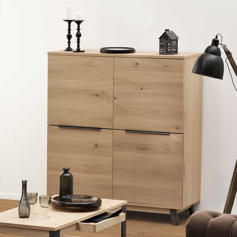 Wohnzimmer Highboard mit Eiche furniert 4-türig