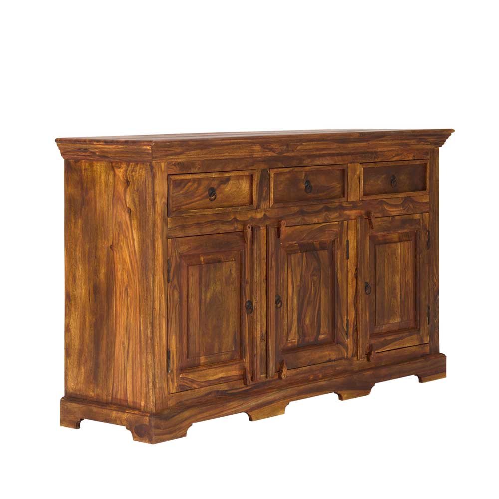 – Sideboard Palisanderfarben – Wohnzimmerschrank Palisander Massivholz – Kommode Mexiko Stil – Sidebord Breite: 150 – Küchenkommode Höhe: 90 – Kommode holz Tiefe: 45 – Kommode massivholz Mit drei Schubladen und mit Holzauszug – Wohnzimmer schrank Schrank-Tür: mit Drehtüren – Wohnzimmer kommode 3-türig, Innenaufteilung: mit Einlegeböden – Kommode massiv Ohne Beleuchtung – Kommode echtholz Fertig montierte Anlieferung (eventuell müssen noch Kleinteile angebracht werden) – Große kommode Sockelgestell aus Massivholz – Echtholz kommode Massivholz Oberfläche, Gewachst (flüssigkeitabweisend) und handgearbeitet – Kommode vollholz Metallgriffen – Esszimmer kommode Abgerundete Korpus-Kanten – Massivholzkommode Rechteckige Form – Wohnzimmerkommode Massivholz Tür – Esszimmerkommode Griff Form: RinggriffInformationen zur Lieferung:Die Zustellung dieses Produktes erfolgt per Spedition. Sie werden vor der Auslieferung durch die ausliefernde Spedition kontaktiert.Terminvereinbarung: Sie werden frühzeitig (ein paar Tage im Voraus) durch die ausliefernde Spedition kontaktiert und Ihnen der Auslieferzeitpunkt mitgeteilt. Die Kontaktaufnahme erfolgt per Telefon. Bei telefonischer Nichterreichbarkeit werden Sie per Postkarte über das Auslieferdatum informiert.Die Lieferung erfolgt aus Kostengründen Frei Bordsteinkante (bis zur ersten verschlossenen Tür). Für den weiteren Transport der Ware sind Sie eigenverantwortlich.Die Auslieferung erfolgt von Montags bis Freitags. Eine Zustellung an Sonn- und Feiertagen ist nicht möglich.
