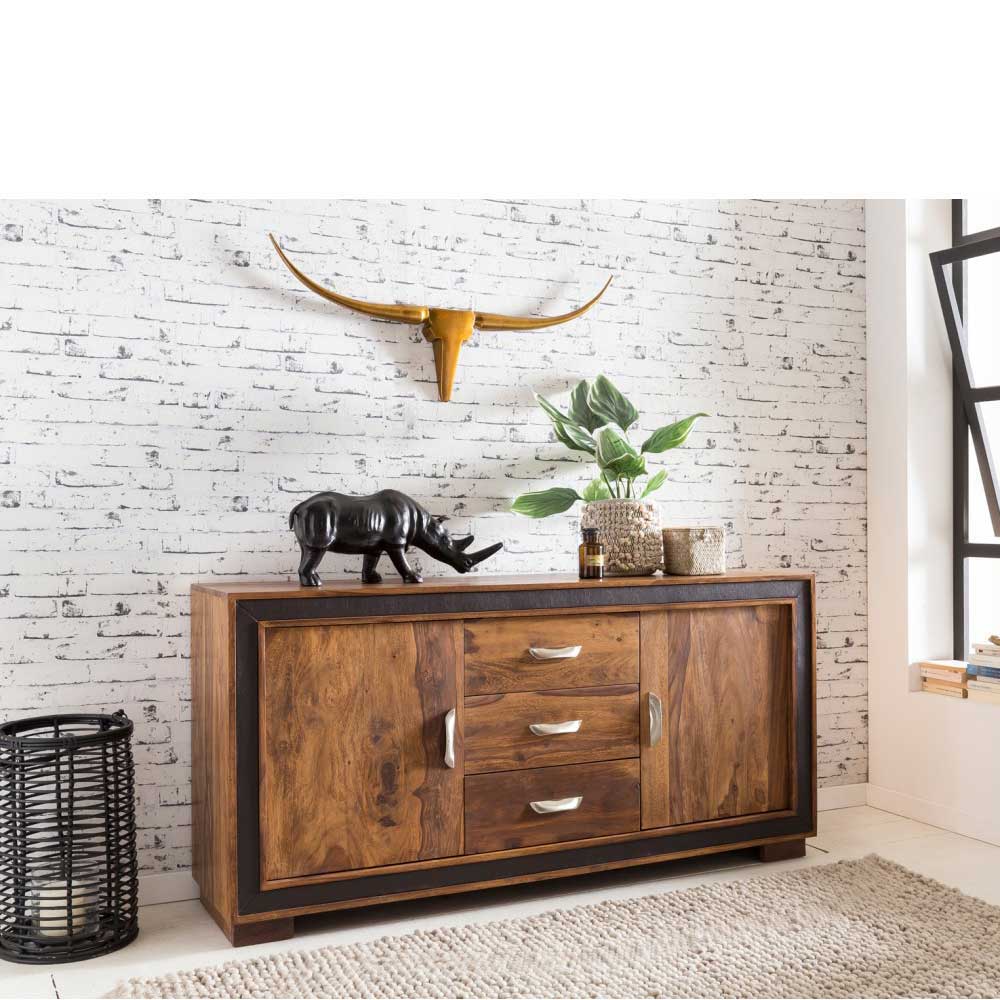 – Sideboard Schwarz und Sheeshamfarben – Wohnzimmerschrank Sheesham Massivholz und Kunstleder (100% Polyurethan) – Kommode Modern – Sidebord Breite: 160 – Küchenkommode Höhe: 80 – Kommode holz Tiefe: 44 – Kommode massivholz Mit drei Schubladen und mit Holzauszug – Wohnzimmer schrank Schrank-Tür: mit Drehtüren – Wohnzimmer kommode 2-türig, Innenaufteilung: mit Einlegeböden – Kommode massiv Ohne Beleuchtung – Kommode echtholz Fertig montierte Anlieferung (eventuell müssen noch Kleinteile angebracht werden) – Echtholz kommode Massivholz Oberfläche und Lackiert – Große kommode Metallgriffen – Esszimmer kommode Rechteckige Form – Kommode vollholz Massivholz TürInformationen zur Lieferung:Die Zustellung dieses Produktes erfolgt per Spedition. Sie werden vor der Auslieferung durch die ausliefernde Spedition kontaktiert.Terminvereinbarung: Sie werden frühzeitig (ein paar Tage im Voraus) durch die ausliefernde Spedition kontaktiert und Ihnen der Auslieferzeitpunkt mitgeteilt. Die Kontaktaufnahme erfolgt per Telefon. Bei telefonischer Nichterreichbarkeit werden Sie per Postkarte über das Auslieferdatum informiert.Die Lieferung erfolgt aus Kostengründen Frei Bordsteinkante (bis zur ersten verschlossenen Tür). Für den weiteren Transport der Ware sind Sie eigenverantwortlich.Die Auslieferung erfolgt von Montags bis Freitags. Eine Zustellung an Sonn- und Feiertagen ist nicht möglich.