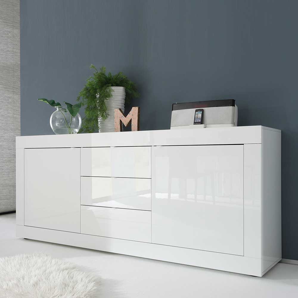 Wohnzimmer Sideboard in Hochglanz Weiß 210 cm