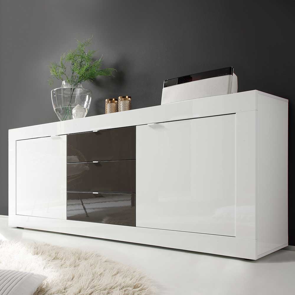 Wohnzimmer Sideboard in Weiß Hochglanz Anthrazit Hochglanz