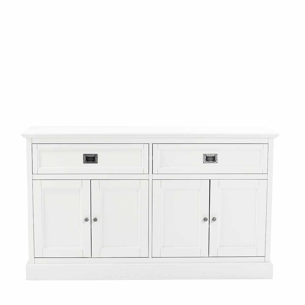 – Sideboard Weiß – Wohnzimmerschrank Massivholz und MDF – Kommode Skandinavischer Landhausstil – Sidebord Breite: 145 – Küchenkommode Höhe: 85 – Kommode holz Tiefe: 45 – Kommode massivholz Mit zwei Schubladen und mit Holzauszug – Wohnzimmer schrank Schrank-Tür: mit Drehtüren – Wohnzimmer kommode 4-türig, Innenaufteilung: mit Einlegeböden – Kommode massiv Ohne Beleuchtung – Kommode echtholz Fertig montierte Anlieferung (eventuell müssen noch Kleinteile angebracht werden) – Große kommode Sockelgestell aus Massivholz – Echtholz kommode Lackiert – Kommode vollholz Metallgriffen – Esszimmer kommode Rechteckige Form