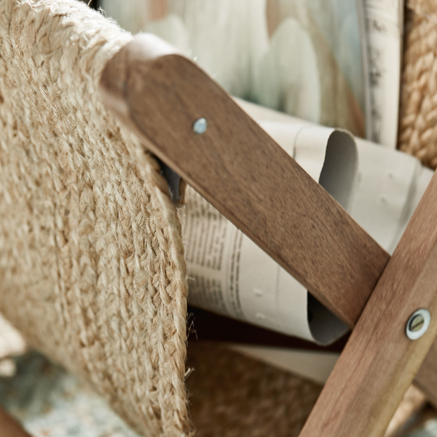 Verstauen Sie Zeitschriften, Zeitungen und Kataloge ordentlich und jederzeit griffbereit in diesem dekorativen Zeitschriftenhalter, der auf ein besonders natürliches Design und nachhaltige Materialien setzt. Das Gestell ist aus robustem Salholz gearbeitet, welches mit einer wirklich hübschen Maserung aufwarten kann. Robust gewebte Jute rundet den hochwertigen Natur-Look sehr stimmungsvoll ab. Die erdigen Farbnoten harmonieren ganz wunderbar mit der unaufdringlichen Holzkonstruktion des Gestells. Der stilvolle Zeitungshalter stellt nicht einfach nur eine Aufbewahrungsmöglichkeit für Lesestoff dar, sondern auch ein stilvolles Wohn-Accessoire. Bei Nichtgebrauch lässt sich das gute Stück einfach zusammenklappen und platzsparend verräumen.